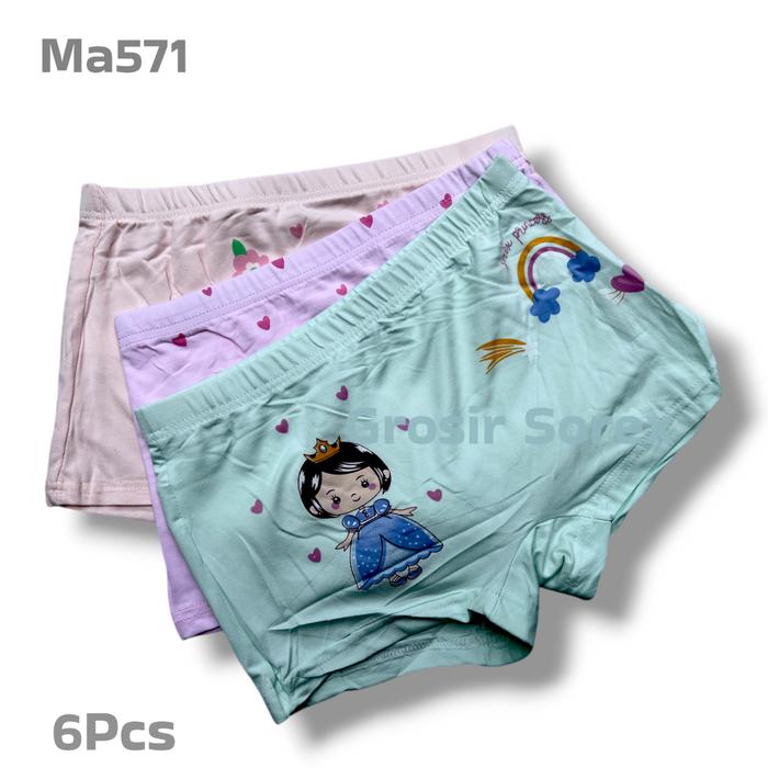 Terlaris 6pcs Sorex Kids Ma571 Celana Dalam Anak Perempaun Super Soft | Cd Anak Model Boxer Premium Quality - L Keren