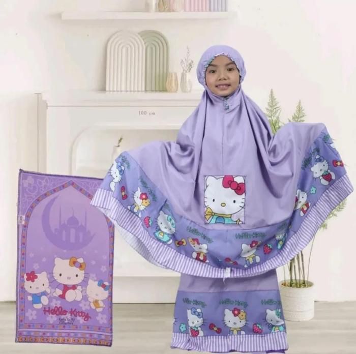 Promo Mukena Anak Plus Sajadah/Tas Karakter HelloKitty Size SMLXl 4 Warna - Biru Muda S Keren