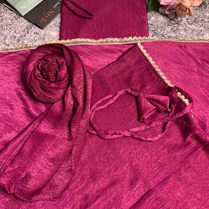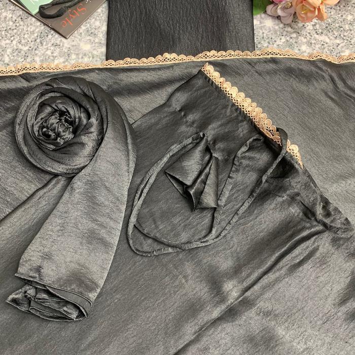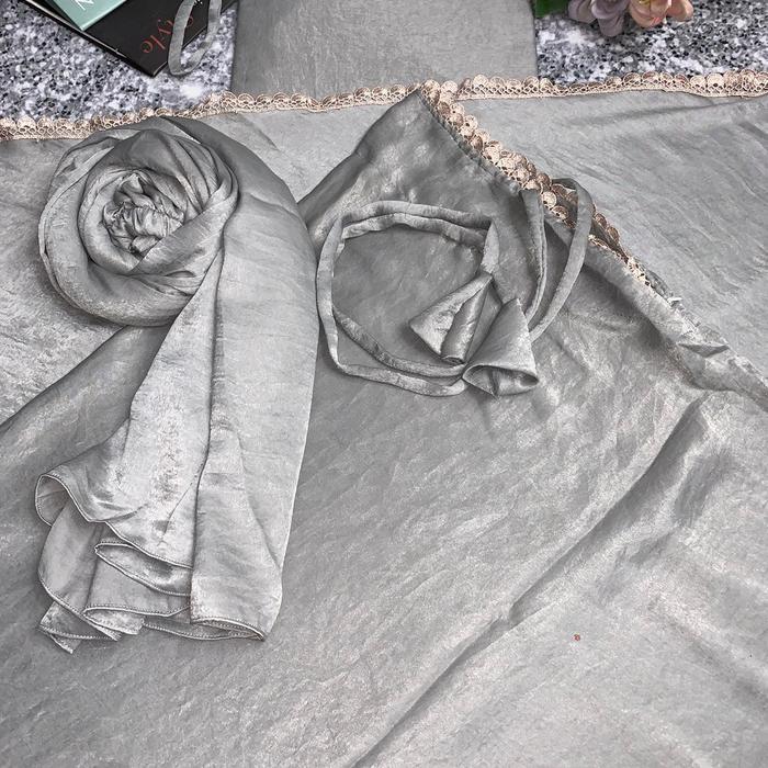 Promo Mukena Silver Santorini Silk Renda Kecil Extra Jumbo 2in1 - 01 Elegan