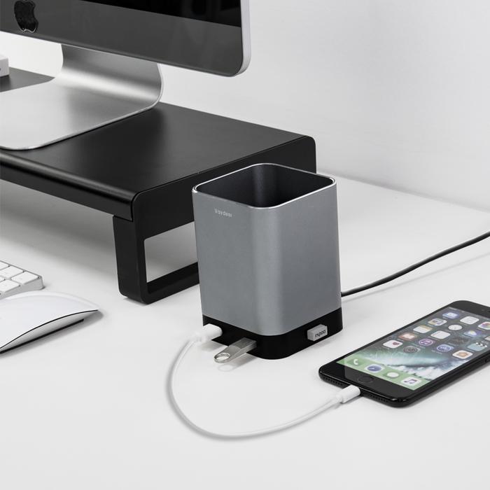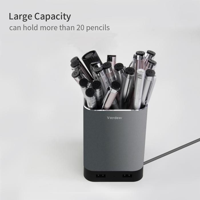 Triple W Desk Holder USB Charging Alumunium Tempat Pulpen Organizer