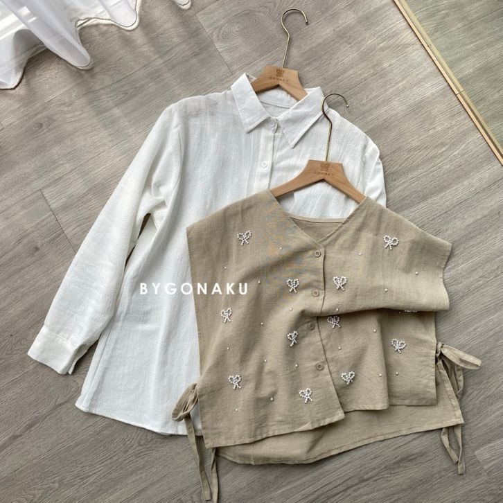 Joyce Top Vest Beads Linen Atasan Kemeja Kerja Blouse Wanita Korean Style Busui Friendly