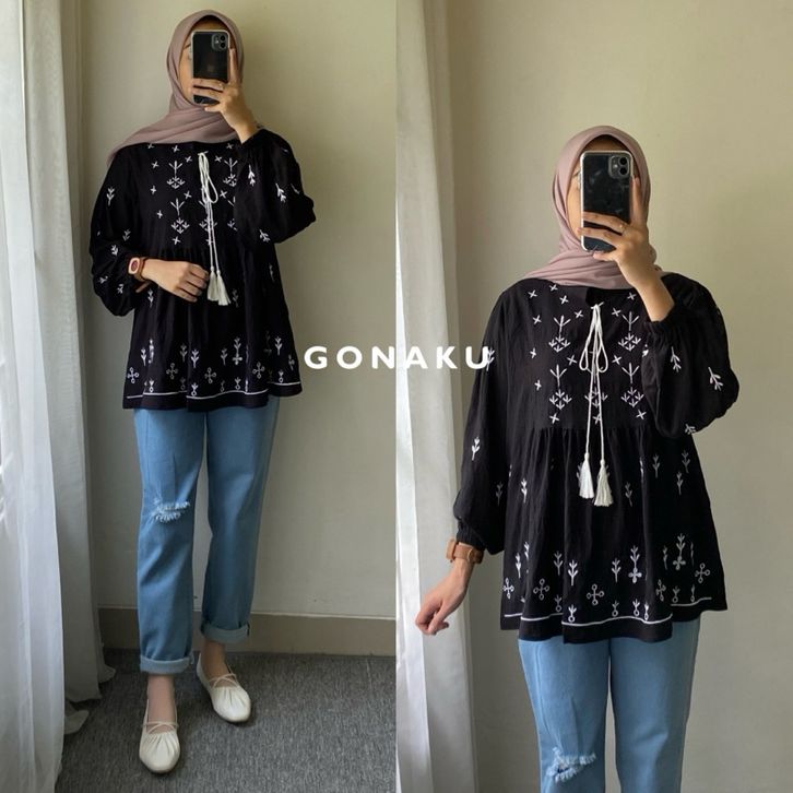 Sophia Basic Oversized Shirt Busui Kemeja Linen Bordir Kemeja Wanita Baju Kerja Kuliah