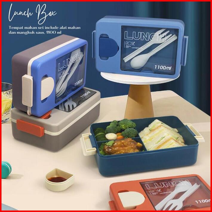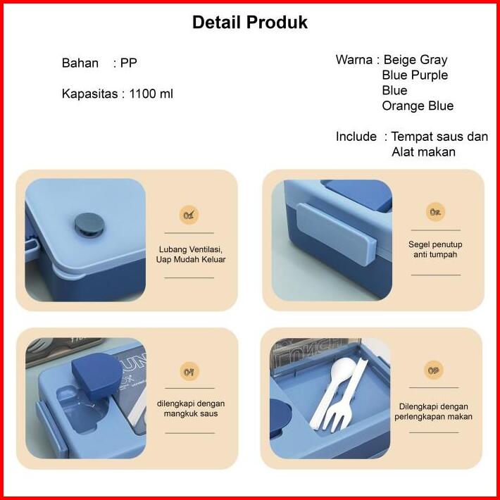 Kotak Bekal Makan Lunch Box Anak Gratis Sendok Makan Food Grade 1100ml