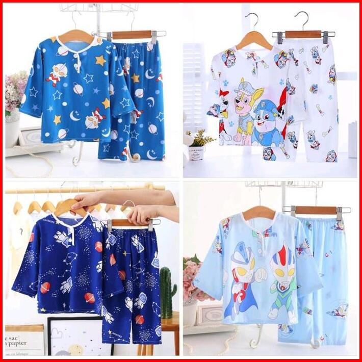 Baju Tidur Piyama Lengan Panjang Anak Umur 0-12 Tahun Impor Bahan Rayon Premium Kpap