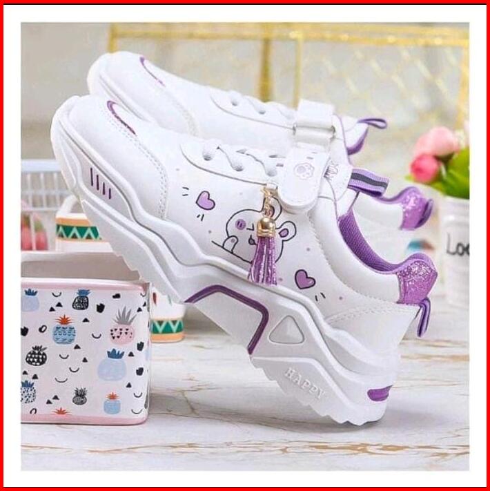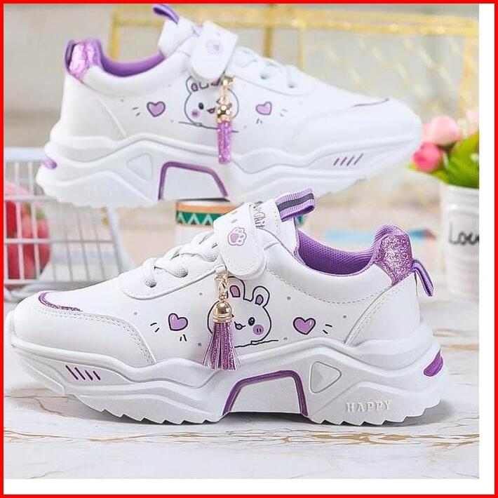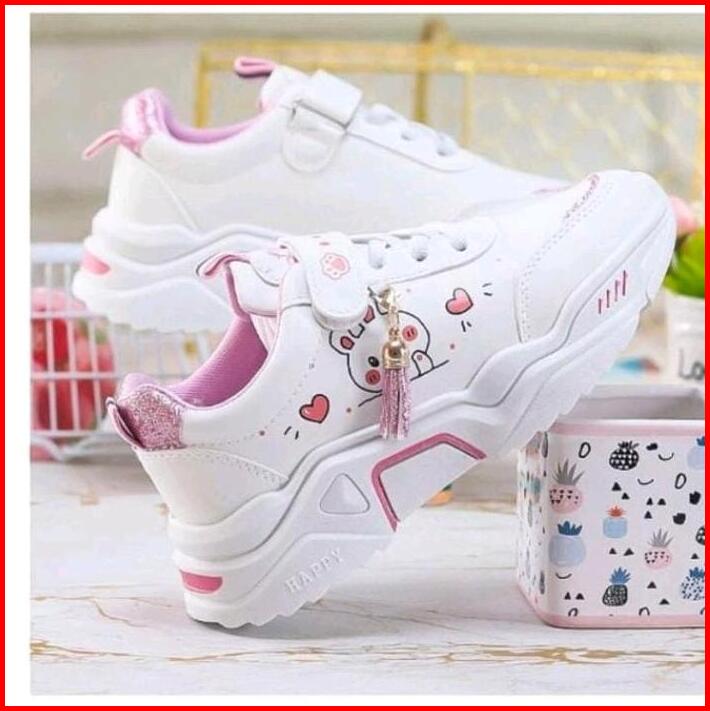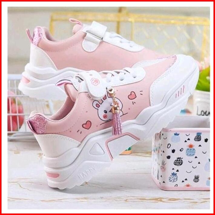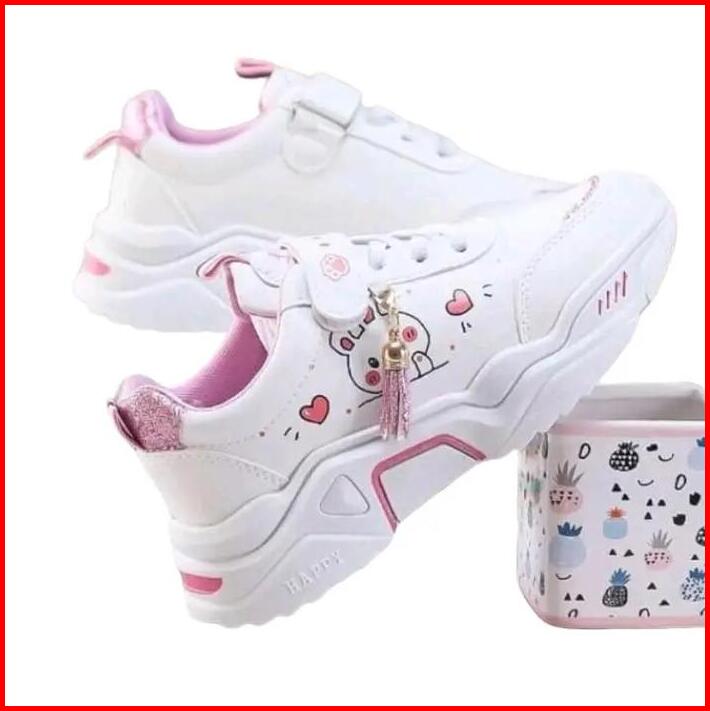 Sepatu Anak Sneaker Motif Cat Sepatu Anak Perempuan Sepatu Anak Sekolah Fashion Sol Karet Zora Hitam Pink Velcro