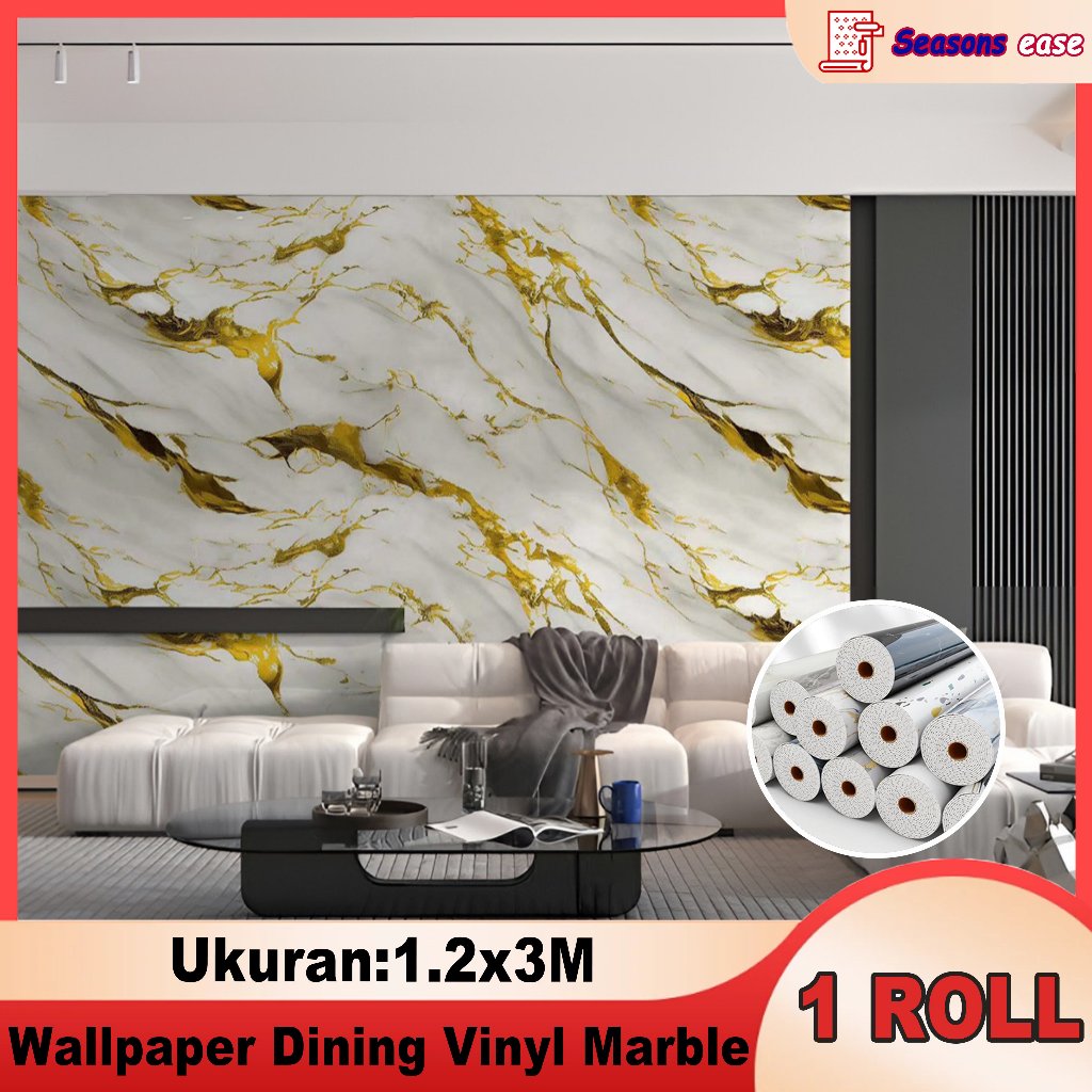 Seasons Ease - Wallpaper Dinding Marmer Vinyl Foam 120x300cm | Roll Waterproof High Quality | Mudah Dibersihkan untuk Ka