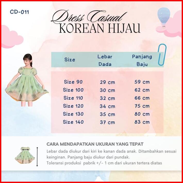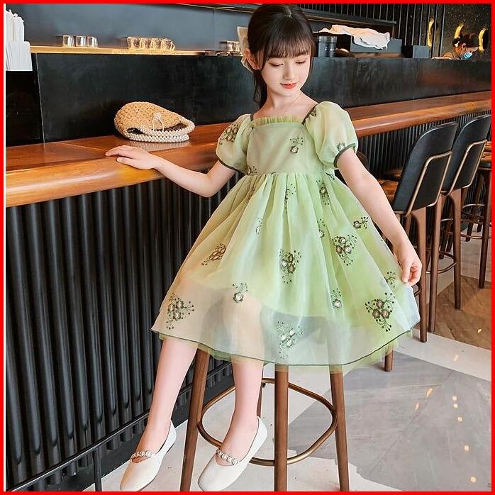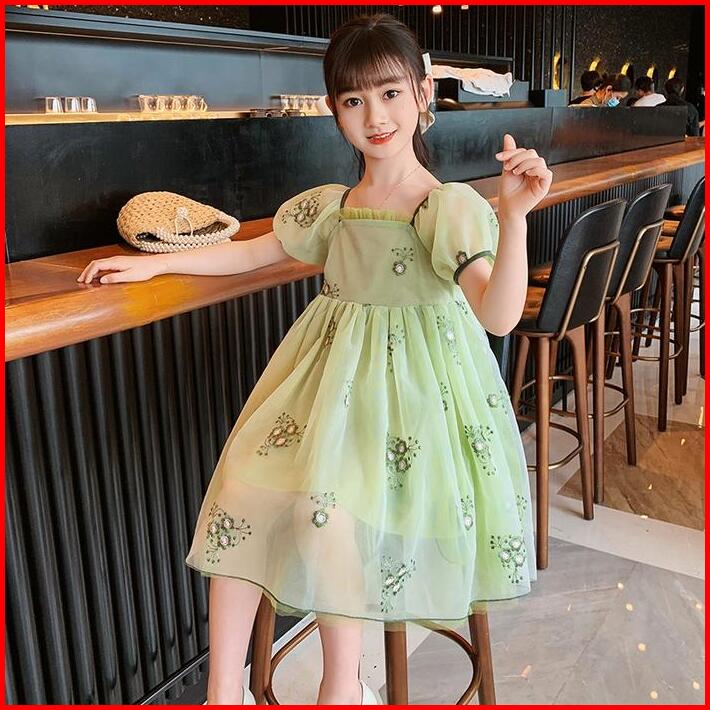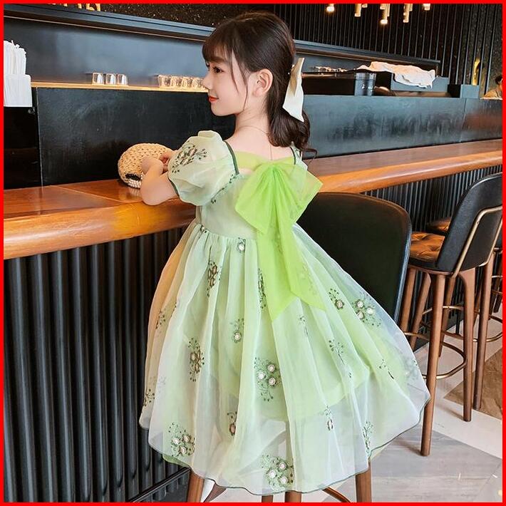 Brandedbaby 1t-7t Gaun Dress Bayi Anak Perempuan Korean Printed Hijau Motif Bunga Lengan Pendek