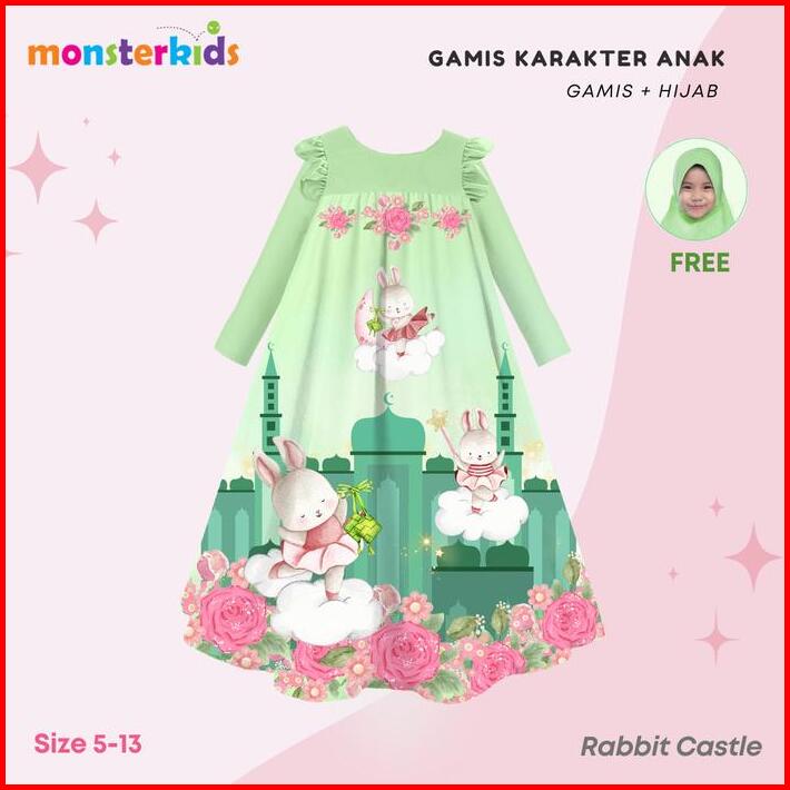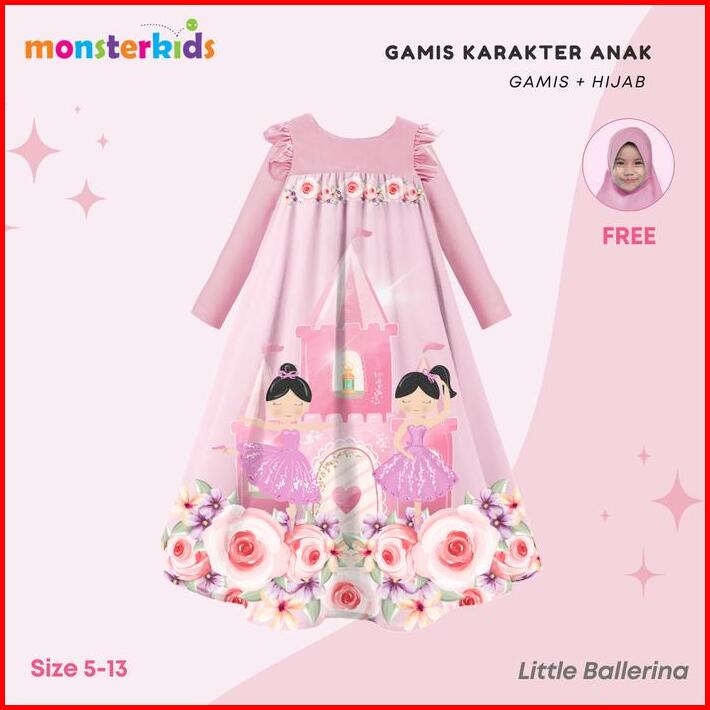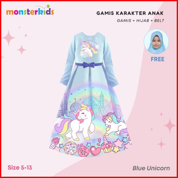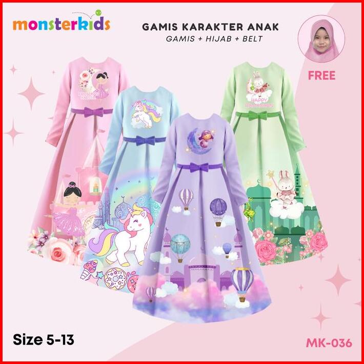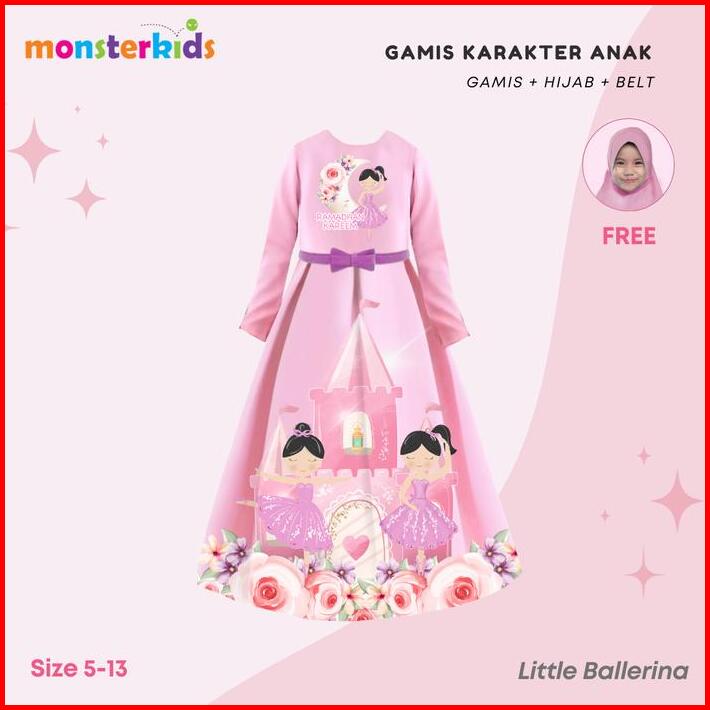 Bandedbaby 3-9t Gamis Anak Karakter Cute 3-in-1 Belt Hijab Girls Islamic Clothing Occasion Set Import