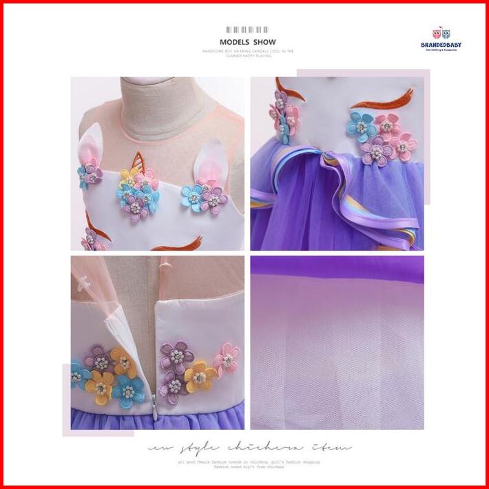 Brandedbaby 4t-13t Long Dress Unicorn Anak Perempuan Premium Gaun Unicorn Costume Ulang Tahun Tutu Gradasi Anak Kostum U