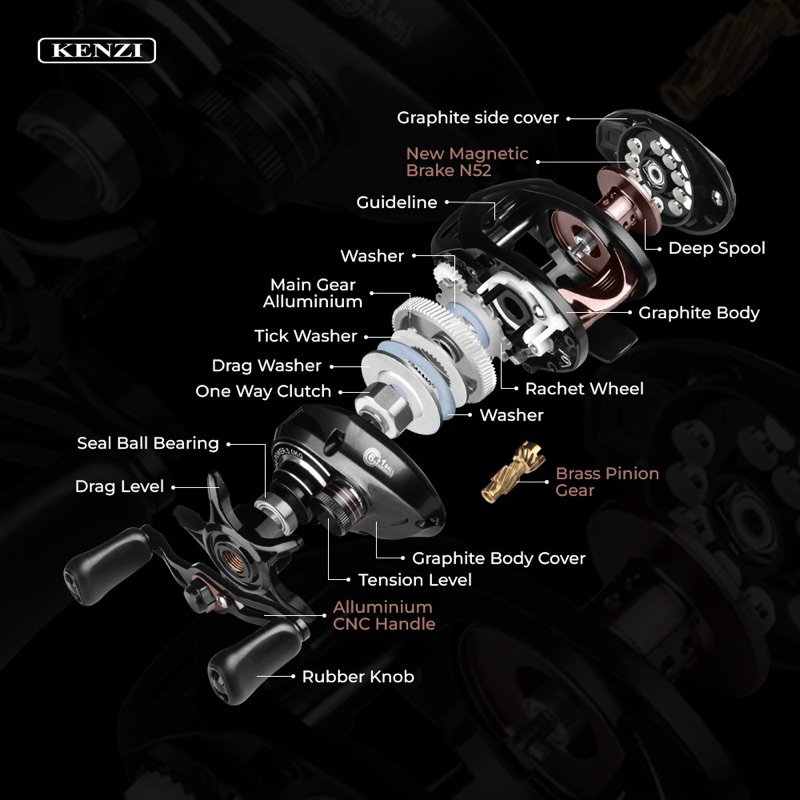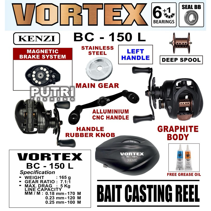 REEL KENZI VORTEX 150L BAITCASTING BC MAGNETIC BRAKE SYSTEM