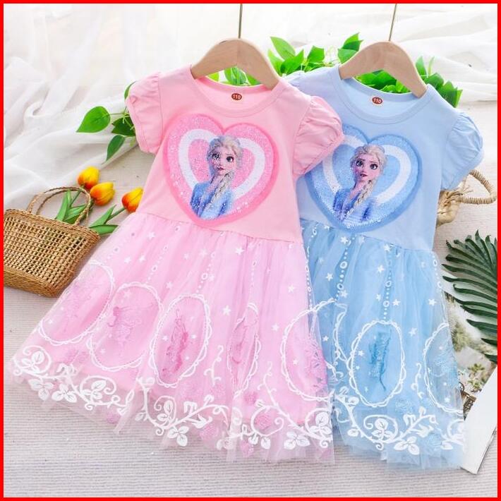 Pakaian Anak Perempuan Elsa Princess Dengan Desain Kartun Dan Sequins Untuk Usia 2-8 Tahun Baju