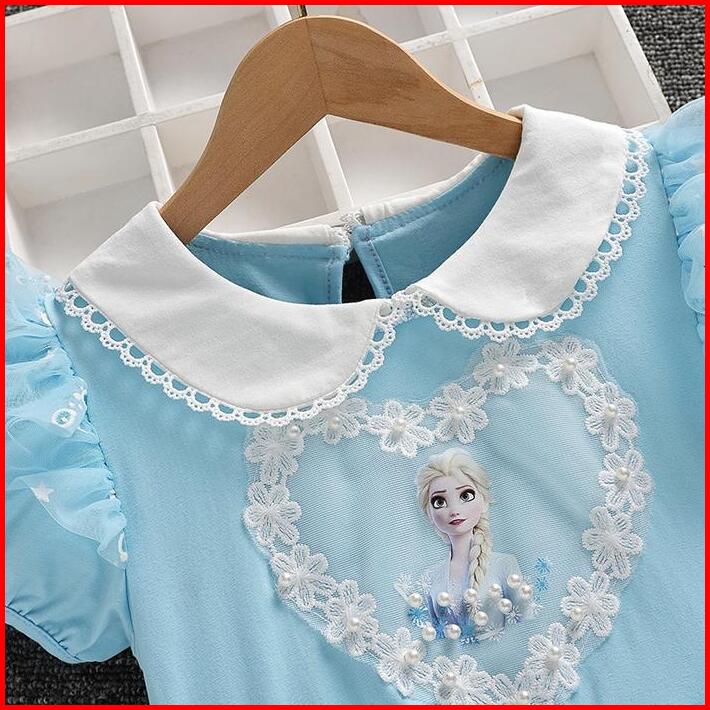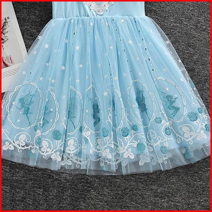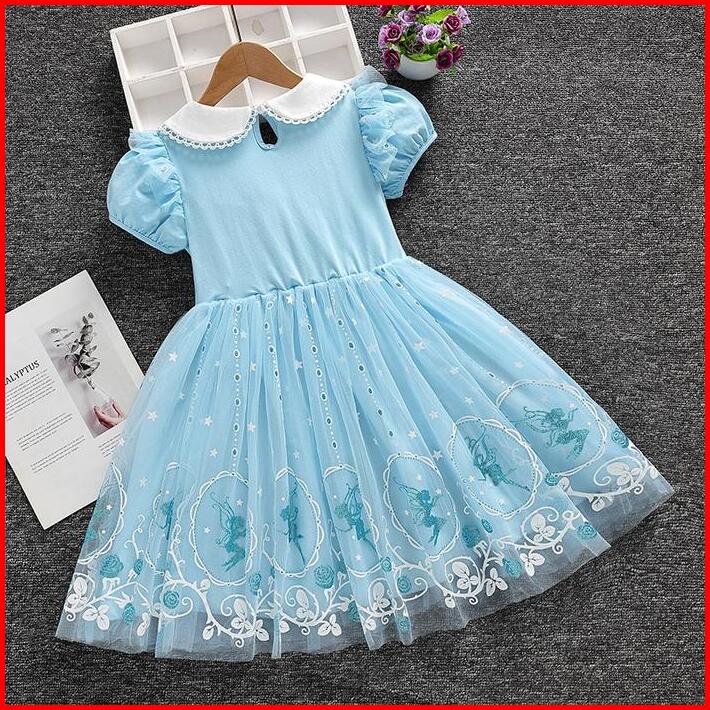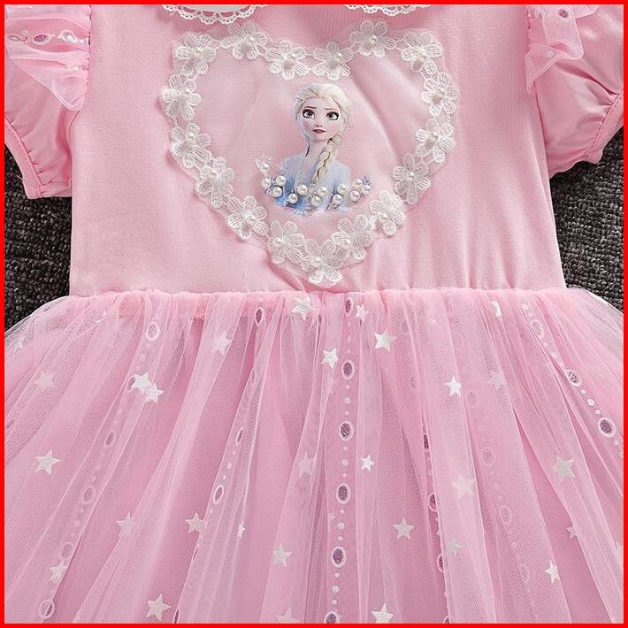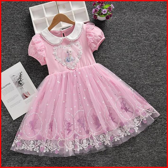 3-10 Tahun Musim Panas Lengan Pendek Gaun Elsa Putri Mesh Rok Gadis Baru Pesta Ulang Tahun Anak-anak