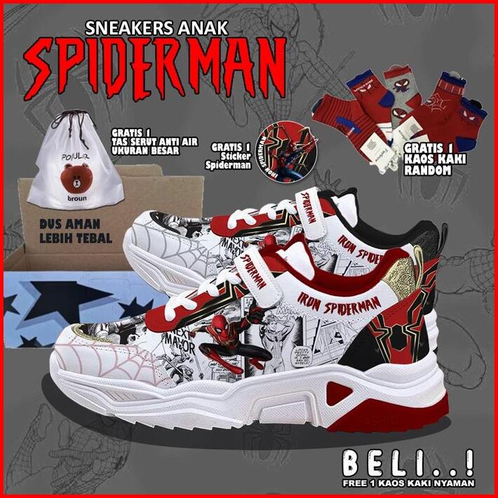 Sepatu Anak Laki-laki Spiderman Disney Terbaru Tk Sd Fashion Merah Hitam