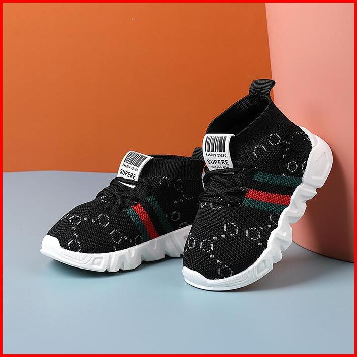 Anak-anak Sneaker Ukuran 22-27 High-top Anak Laki-laki Anak Perempuan Sepatu Flyknit Bernapas Lembut Bawah Sepatu Olahra