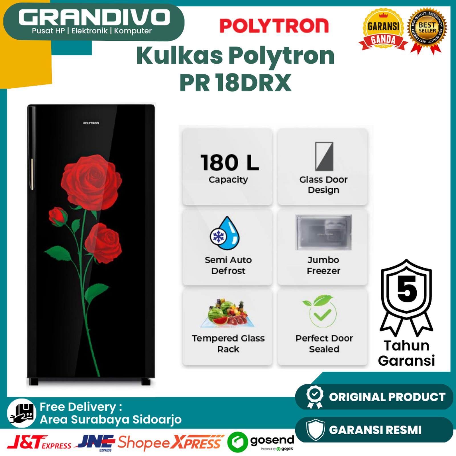 PROMO Kulkas POLYTRON 180 liter 1 Pintu BellezaVaria PRA 18DRX 180L - PRA18DRX ROSE RED Garansi Resmi - Grandivo