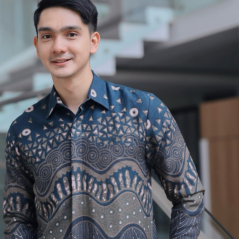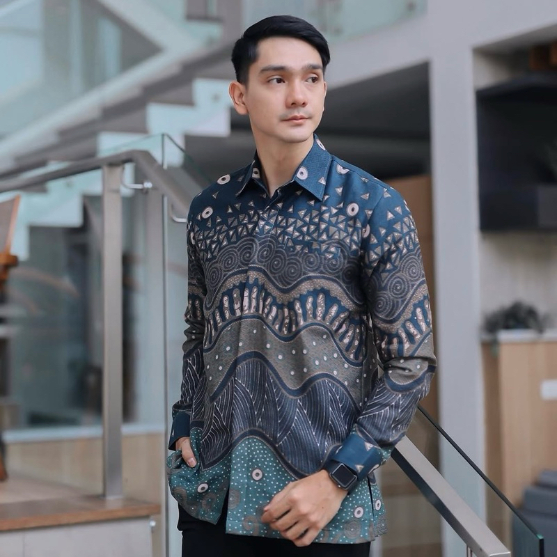 KEMEJA batik pria modern slim fit premium DOBY halus lengan panjang full furing EVANO DOBY BIRU