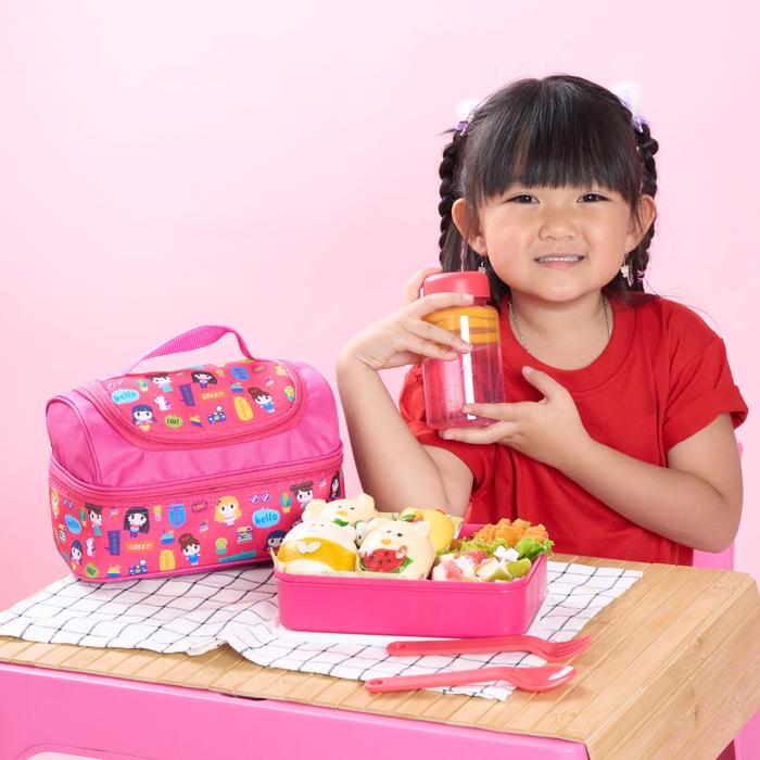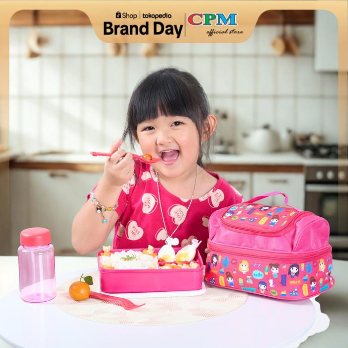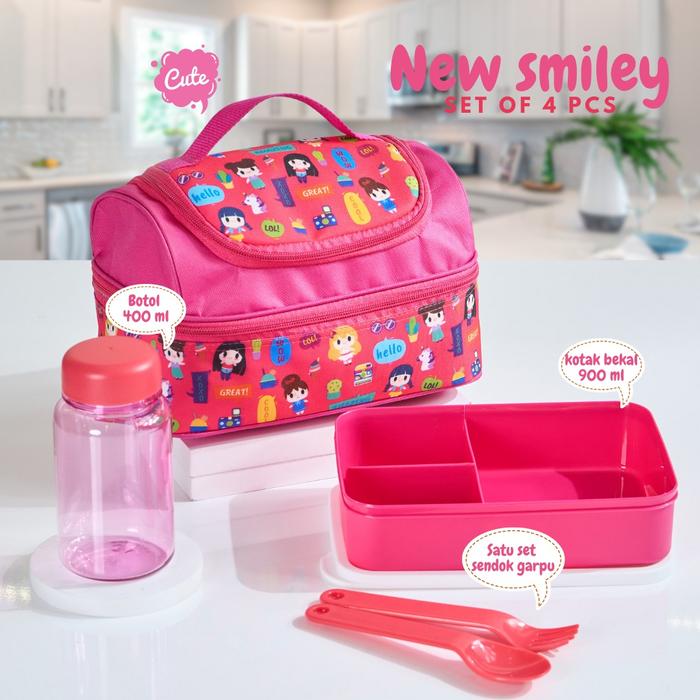 CPM new smiley premium set of 4 pcs pink /tas bekal makan tingkat anak dan terdapat stiker