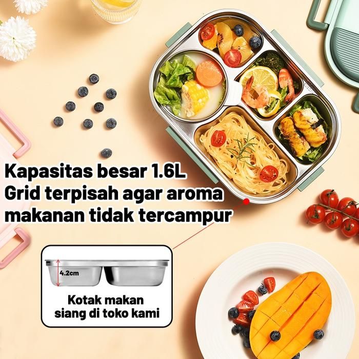 UPHOME Lunch Box 1600ml Sekat 5 Stainless 304 Tahan Panas Anti Tumpah