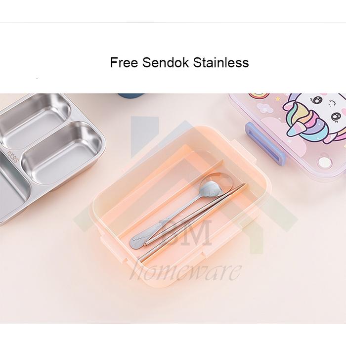 Kotak Makan Stainless Steel Karakter Lucu / Lunch Box Set Unicorn Dino Bekal Anak Souvenir