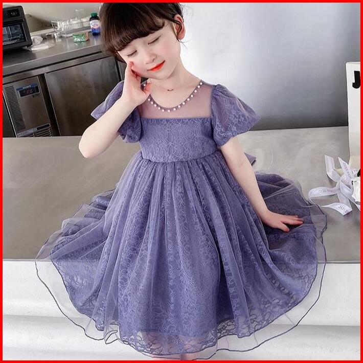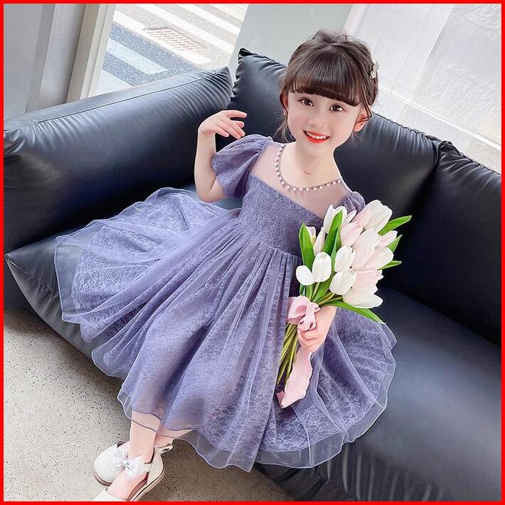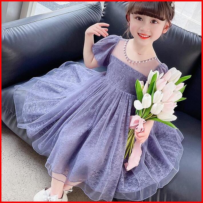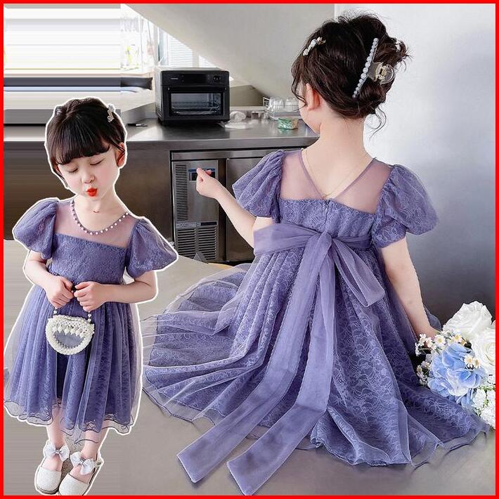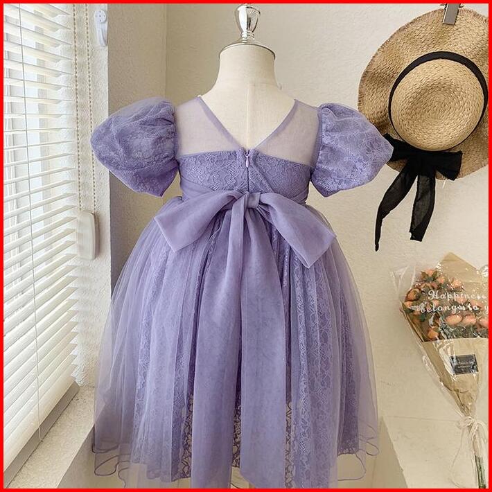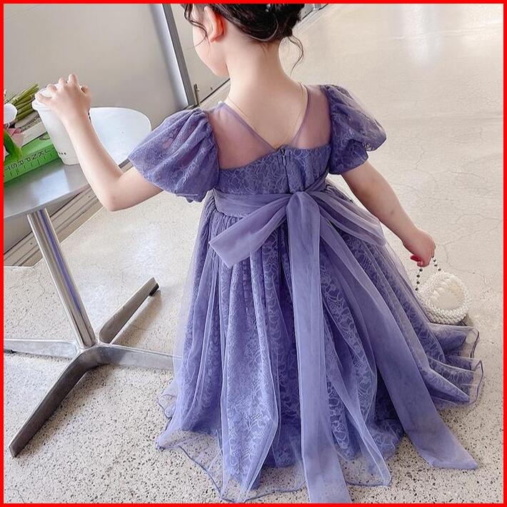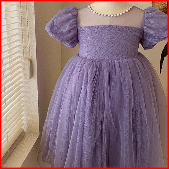 2-7thn Kontes Kecantikan Princess Dress Pesta Anak Perempuan Wedding Floral Ungu Gaun Ulang Tahun