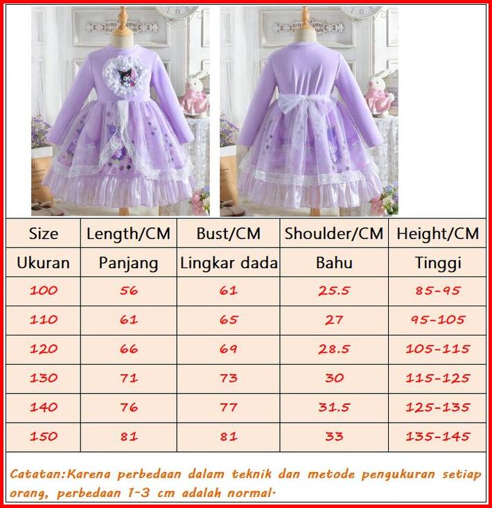 Lengan Panjang Baju Anak Perempuan Kuromi Gaun Baru Perempuan Gaun Putri Fashion Baju Perempuan
