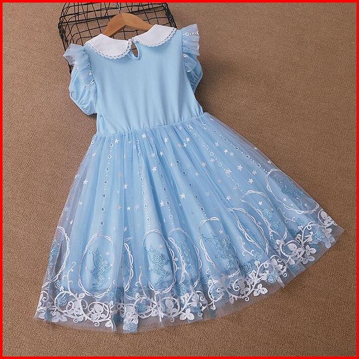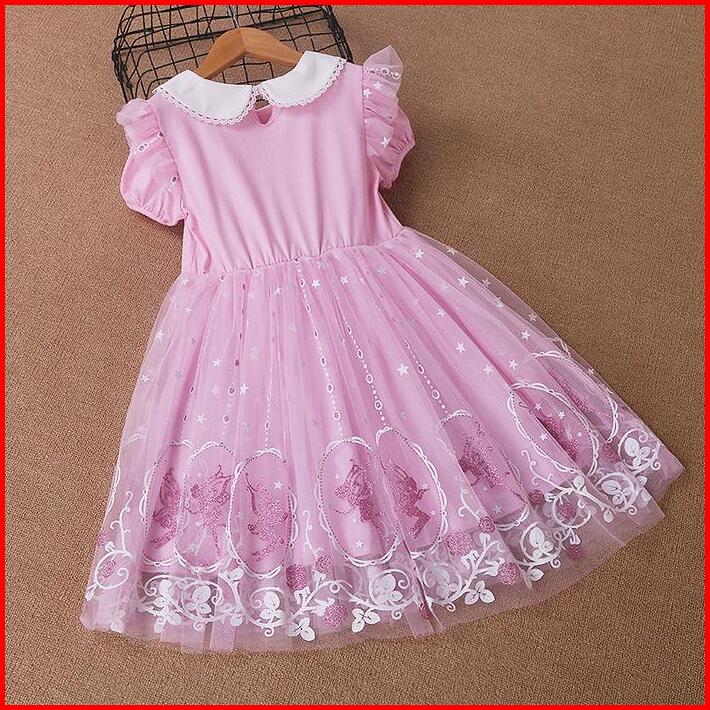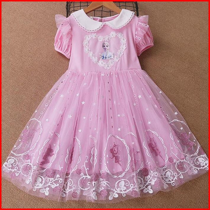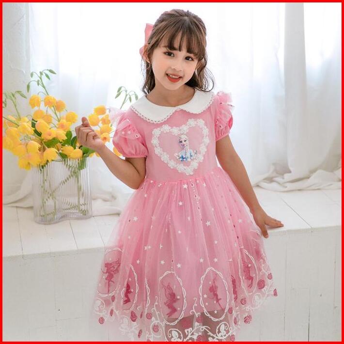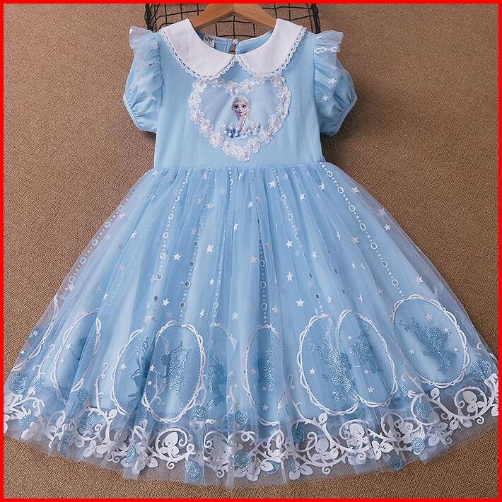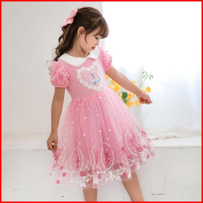 3-10 Thn Anak Perempuan Frozen Elsa Princess Dress Untuk Pesta Bunga Lengan Pendek Gaun Tutu Baju Pakaian