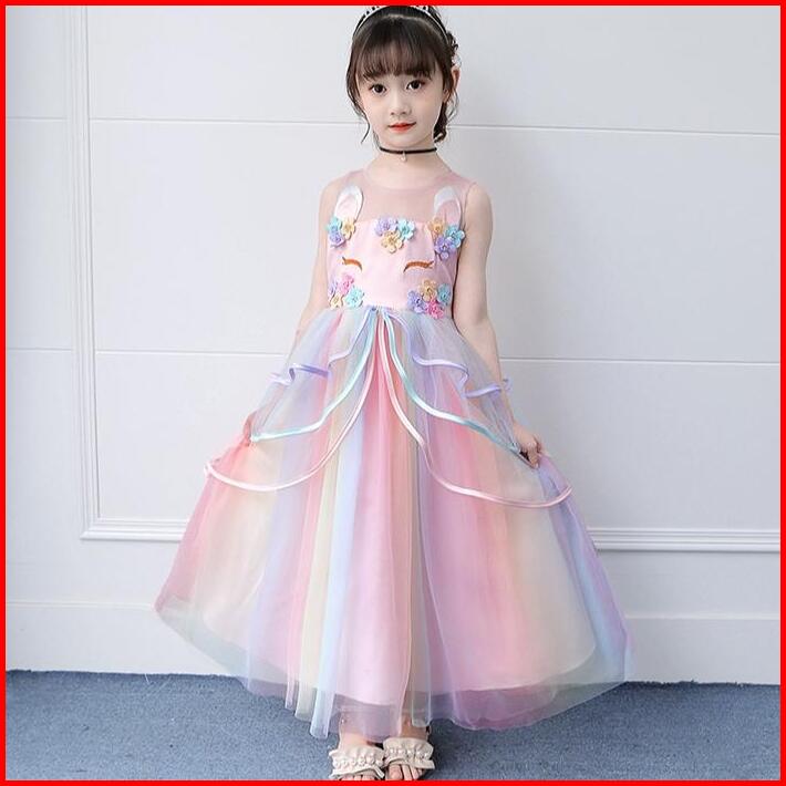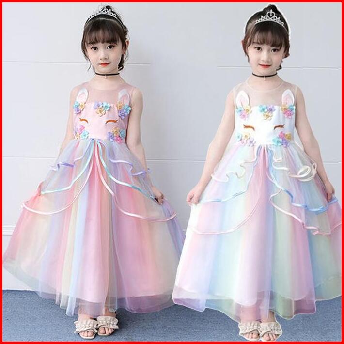 Gaun Pengantin Anak Unicorn Princess Panjang 3-12 Tahun Untuk Acara Spesial