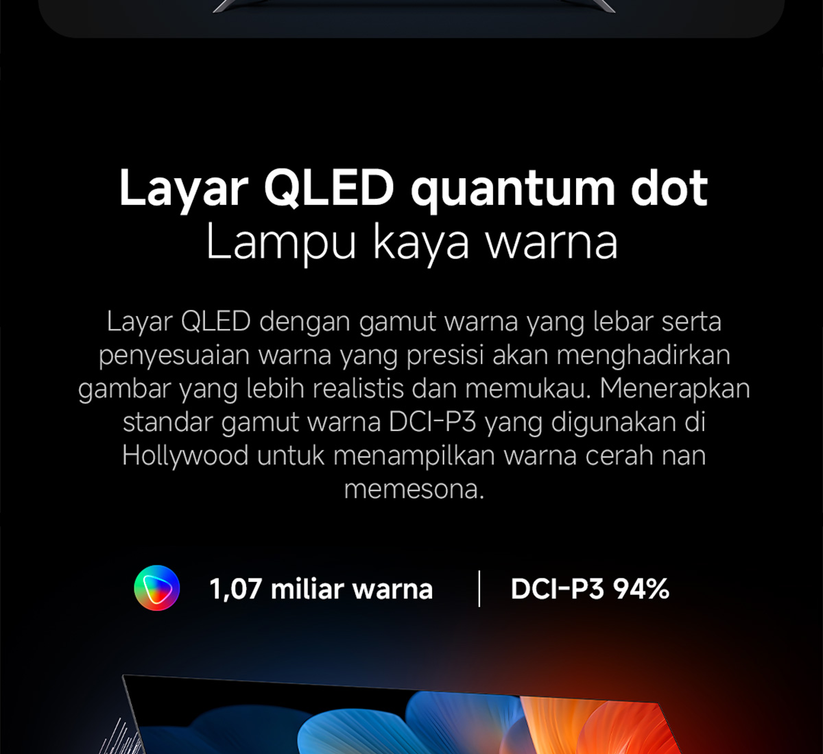 TV Xiaomi A Pro 55 2026 Layar 4K QLED 120 Hz Game Boost Mode HDR10+ Filmmaker Mode Frame sleek metal & bezel ultra tipis