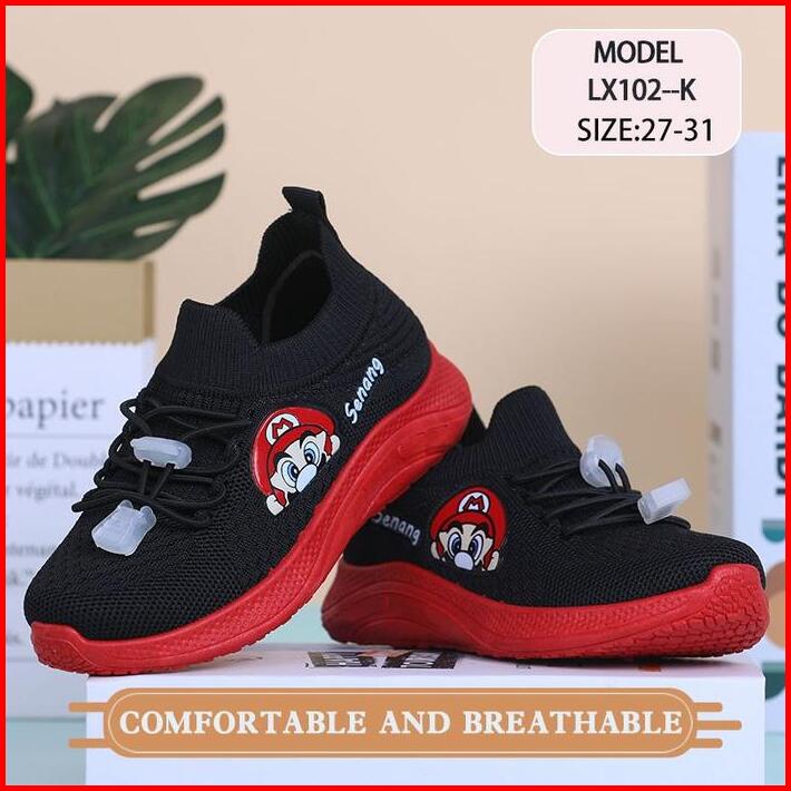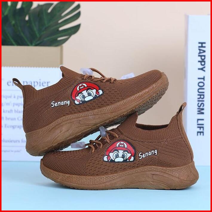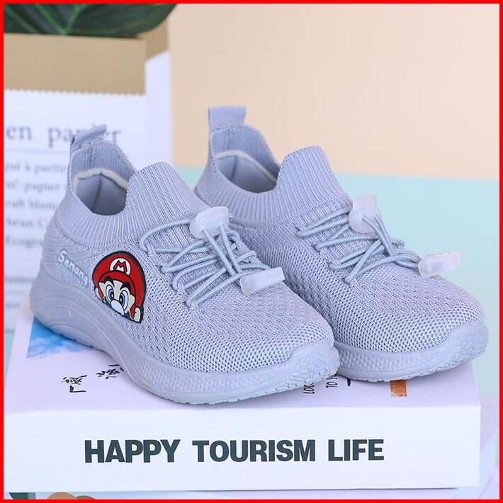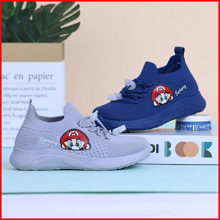 Collin Sepatu Anak Bayi Perempuan Laki-laki Slip On Rajut Sneakers Tali Hidup Motif Super Mario Kaki Anak-anak