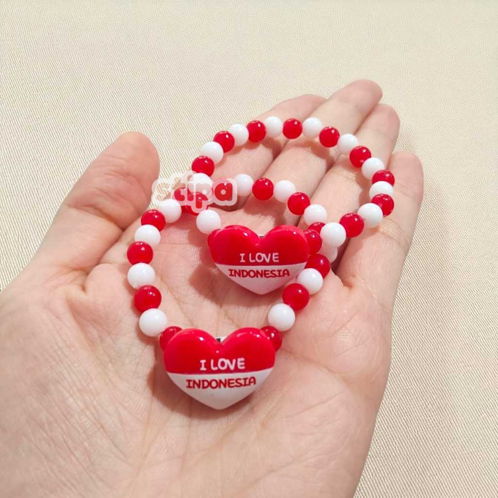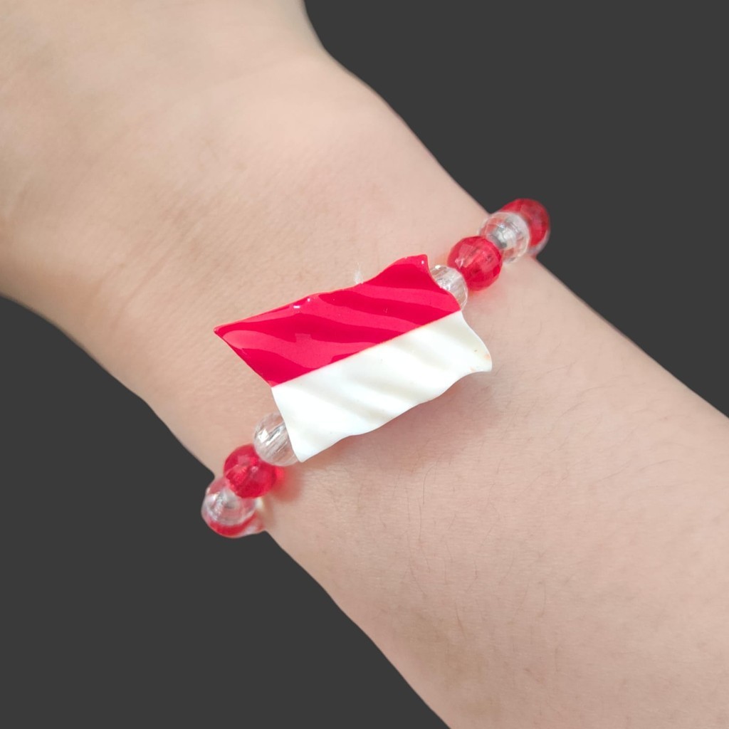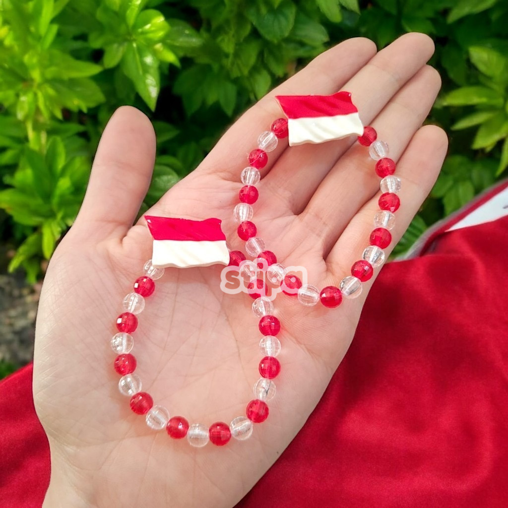 STIPA Gelang Karet Mote Bendera Merah Putih Aksesoris Kemerdekaan HUT RI 17an Bangle Tangan Beads Manik Warna