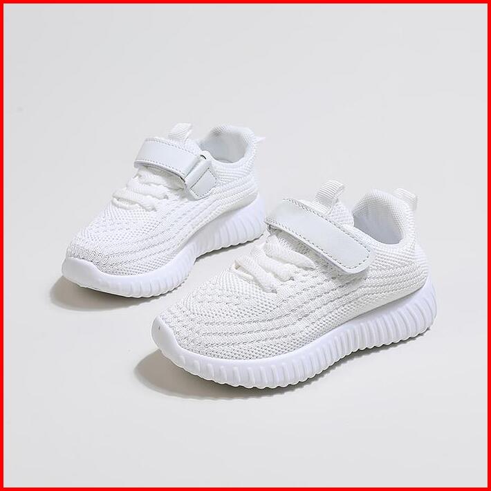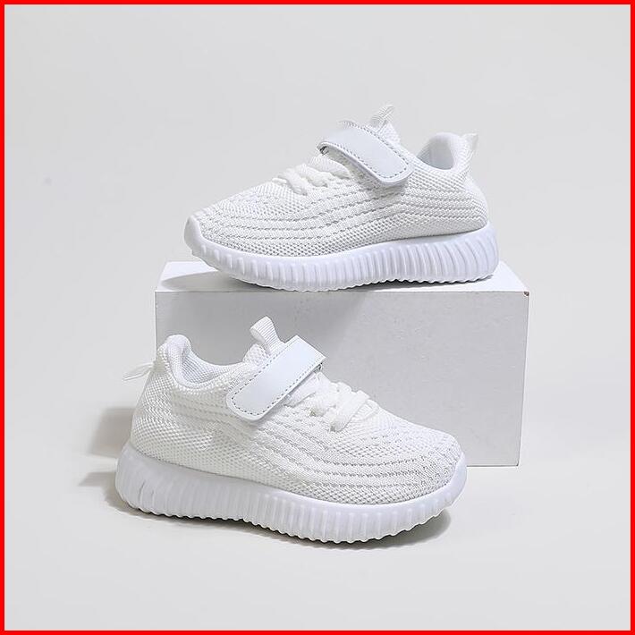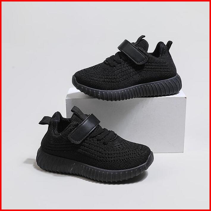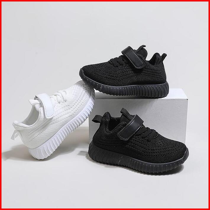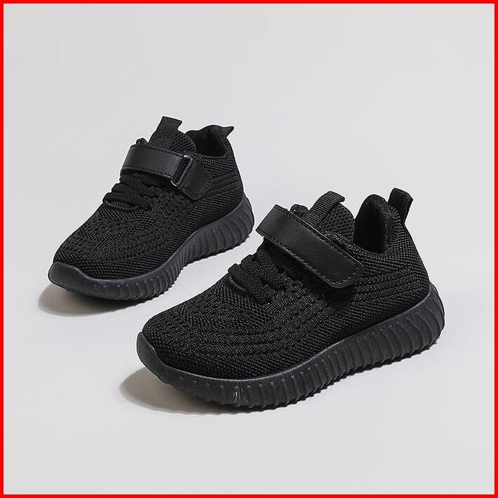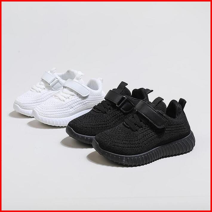 Ukuran 25-36 Hitam Putih Anak Sol Lembut Sepatu Olahraga Velcro Bernapas Sneaker Kasual Sepatu Sekolah