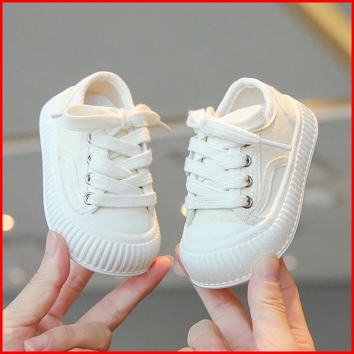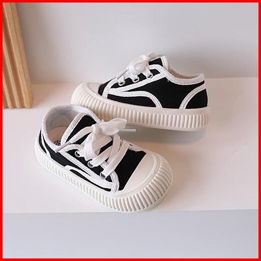 Sepatu Kanvas Hitam Putih Anak-anak Keluaran Baru Sepatu Datar Anti-selip Bagian Bawah Lembut Bertali