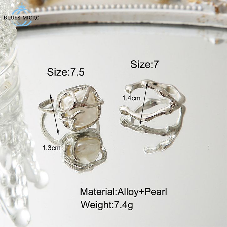 Perhiasan Wanita Aksesoris Cincin Isi 2pcs Set Cincin Kreatif Sederhana Temperamen Pembukaan Mutiara Tidak Teratur Cinci