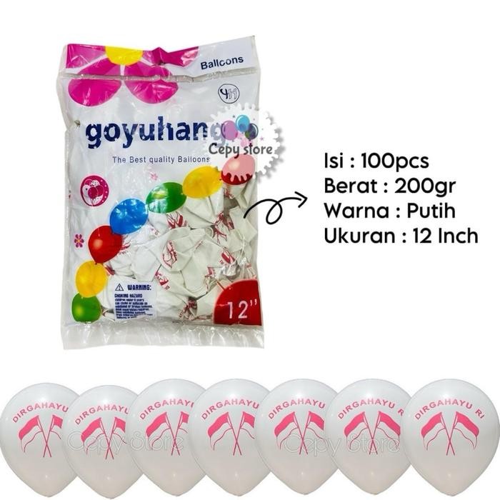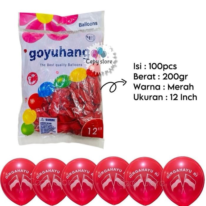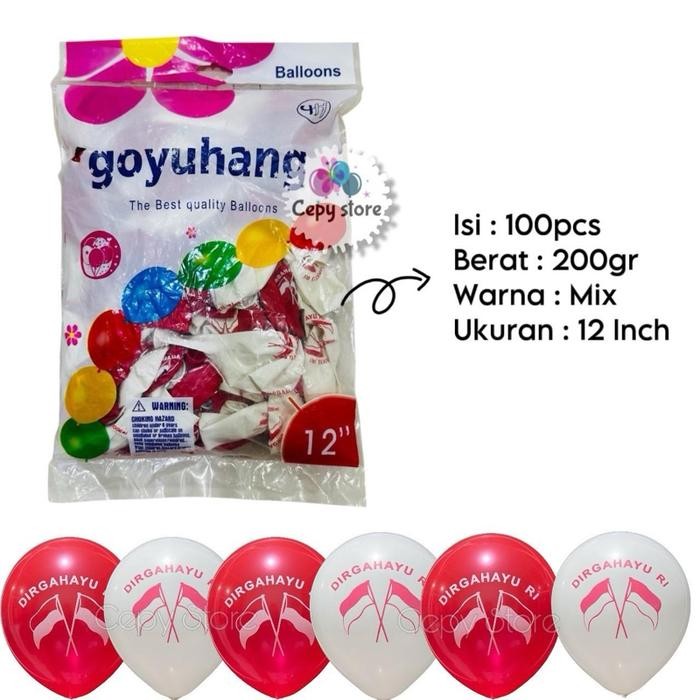 200GR - ISI 100Pcs Balon Latex DIRGAHAYU RI / Balon Merah Putih 17 Agustus