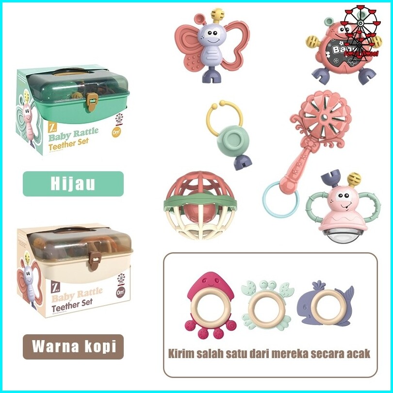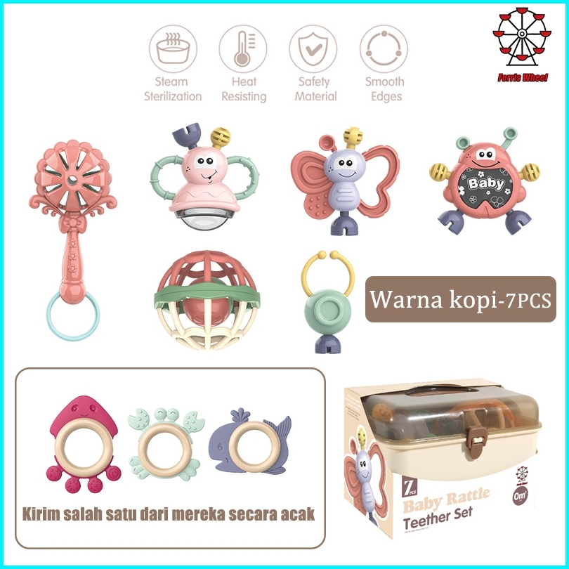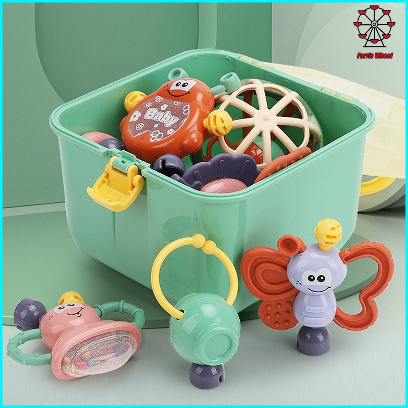 Ferris Wheel 7pcs Kotak Penyimpanan Gum Gigi Mainan Kerincingan Teether Gigitan Bayi Set Bpa Free Baby Teether Rattle Ma