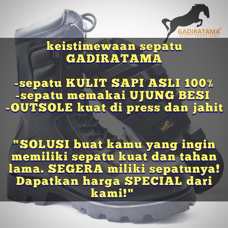 sepatu PDL TNI POLRI safety ujung BESI KULIT SAPI KOMBINASI CORDURA WATERPROOF GADIRATAMA !