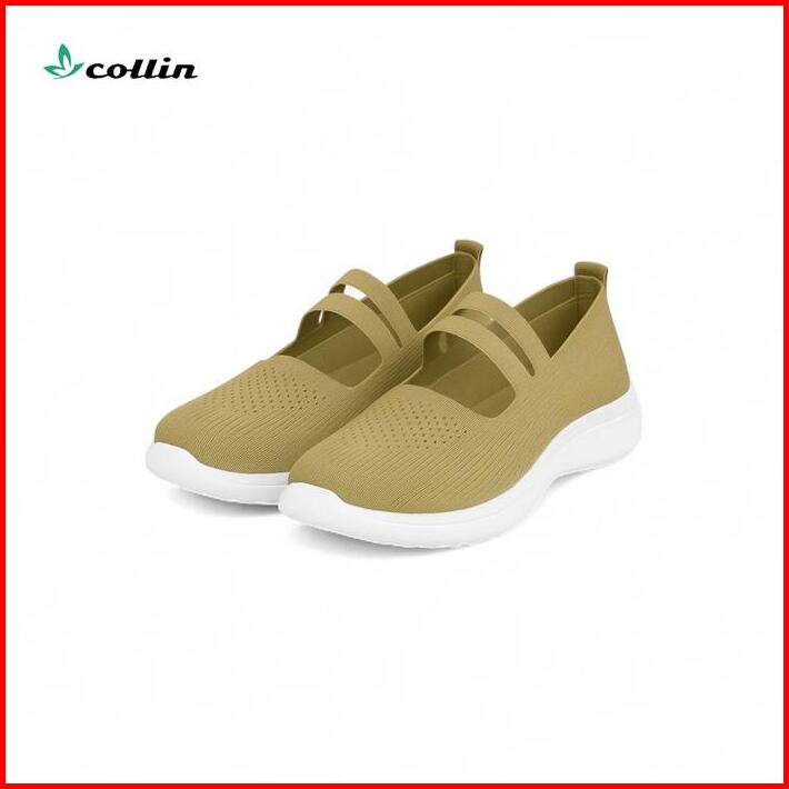 Collin Sepatu Wanita Strip Rajut Yh655 Casual Shoes Cewek Sneakers Olahraga Sport Running