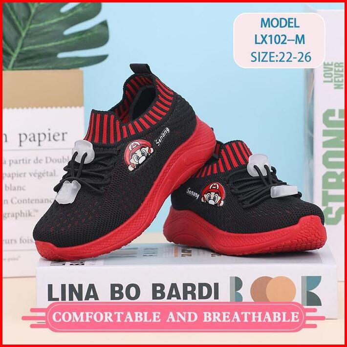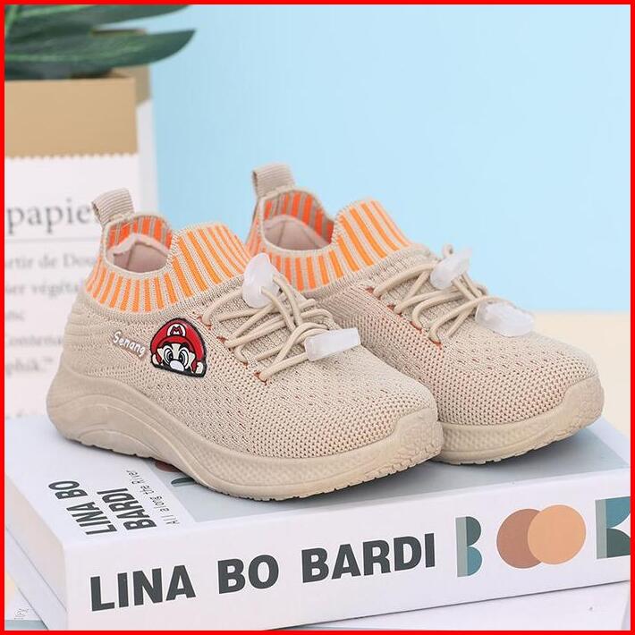 Collin Sepatu Anak Bayi Perempuan Laki-laki Slip On Rajut Sneakers Tali Hidup Motif Super Mario Kaki Anak-anak