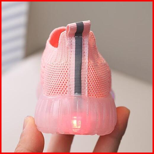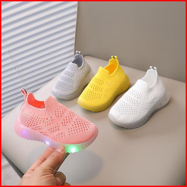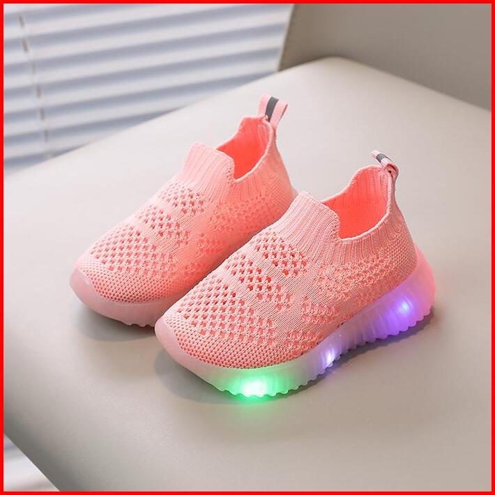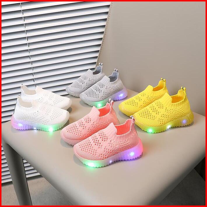 Anak-anak Berusia 1-8 Tahun Slip Pada Lampu Flash Sneaker Bernapas Sepatu Sepatu Flyknit Led Soft Bottom Non-slip