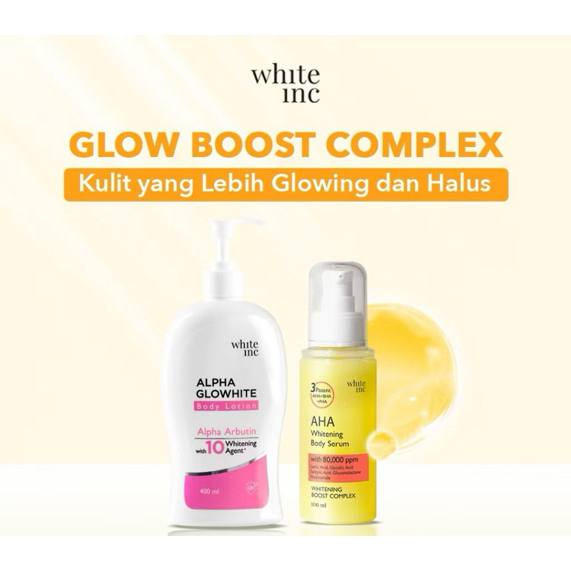 BUNDLING PAKET GLOW BOOST COMPLEX WHITE INC AHA Body Serum + Alpha Glowhite Body Lotion / Paket Pencerah tubuh / Whiteni