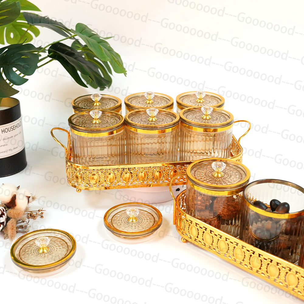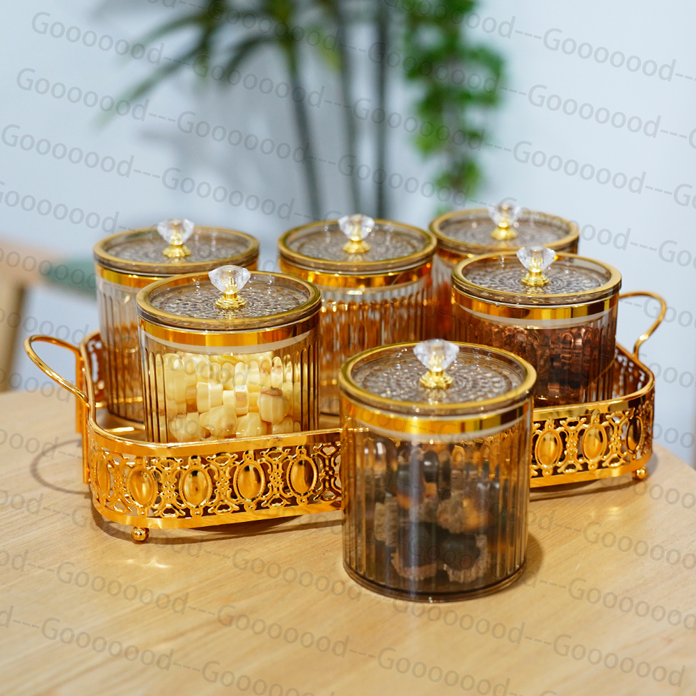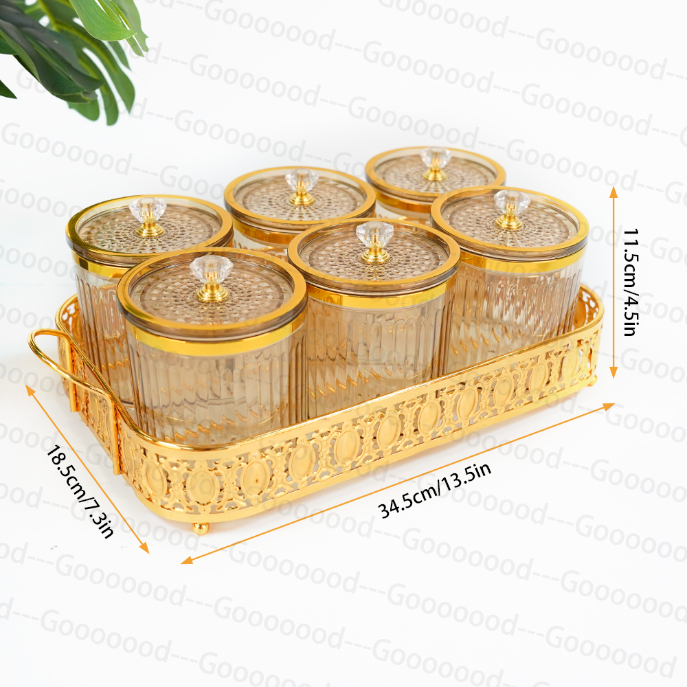 Set 3 buah/Set 4buah/set 6 buah/set toples stoples bersegel plastik palet mewah/toples penyimpanan makanan/toples penyimpanan kue dapur/toples set emas/baki nampan mewah