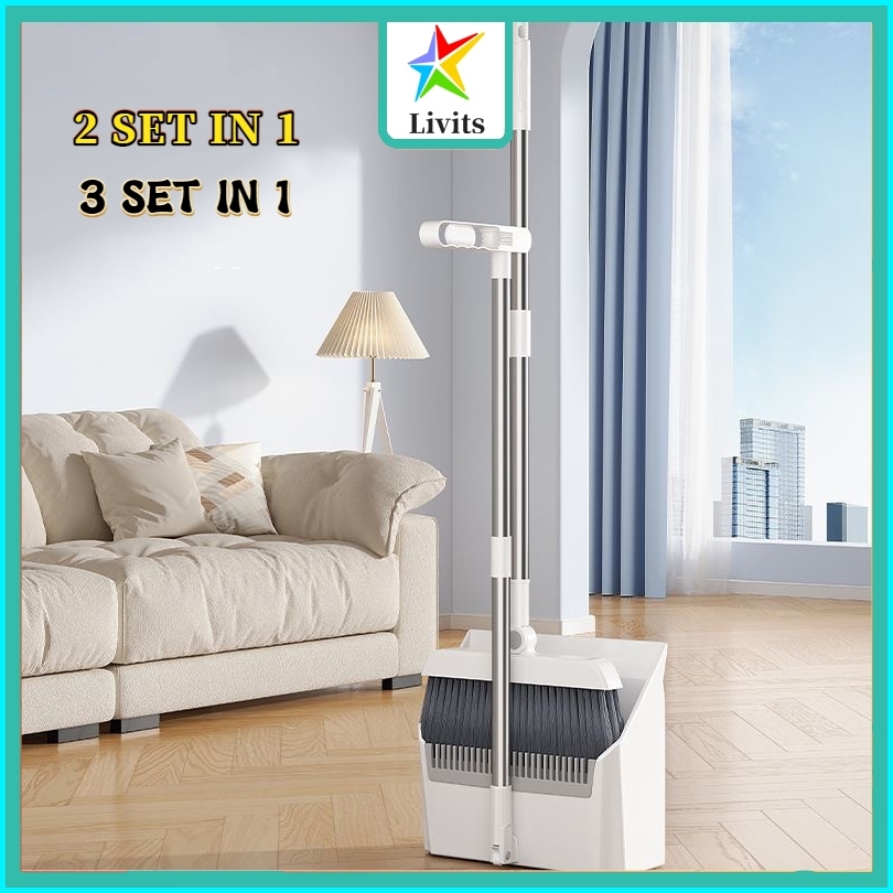 Set Sapu Pengki Lipat Praktis Broom Set Dustpan Pembersih Lantai Multifungsi