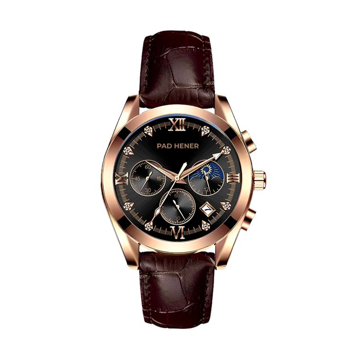 MURAH PAD HENER Eugene Leather Rose Gold Jam Tangan Pria Wanita Anti Air 42mm agafmn