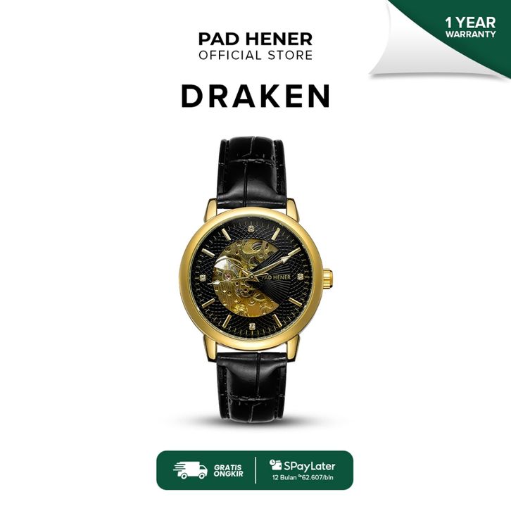 PROMO PAD HENER Draken Automatic Gold Leather Jam Tangan Pria Anti Air 40mm onacb