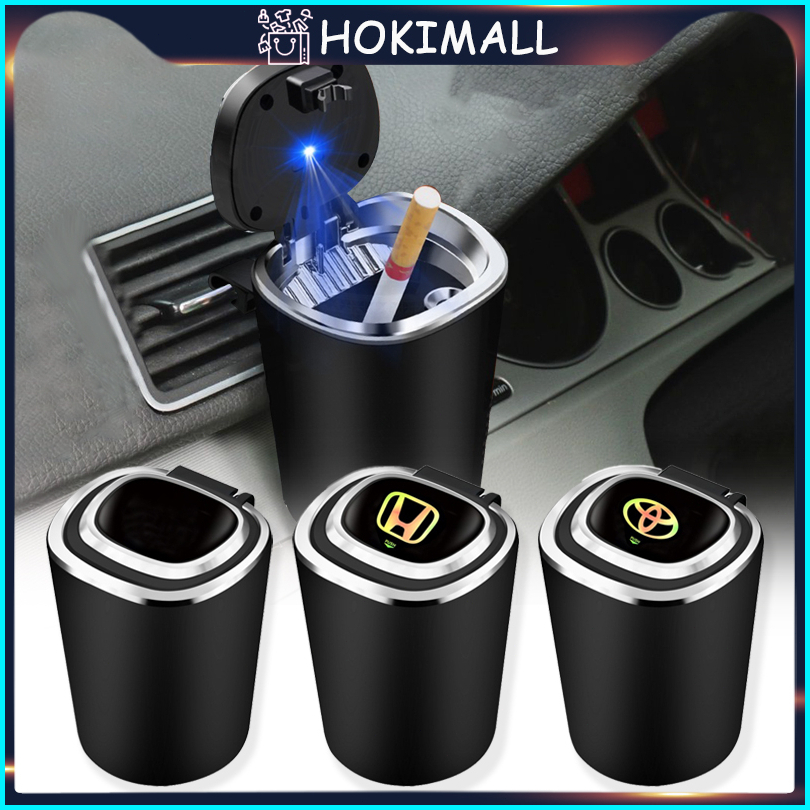 Asbak Mobil Portable Stainless Steel Led Multi Fungsi Mini Storage Logo Toyota Honda