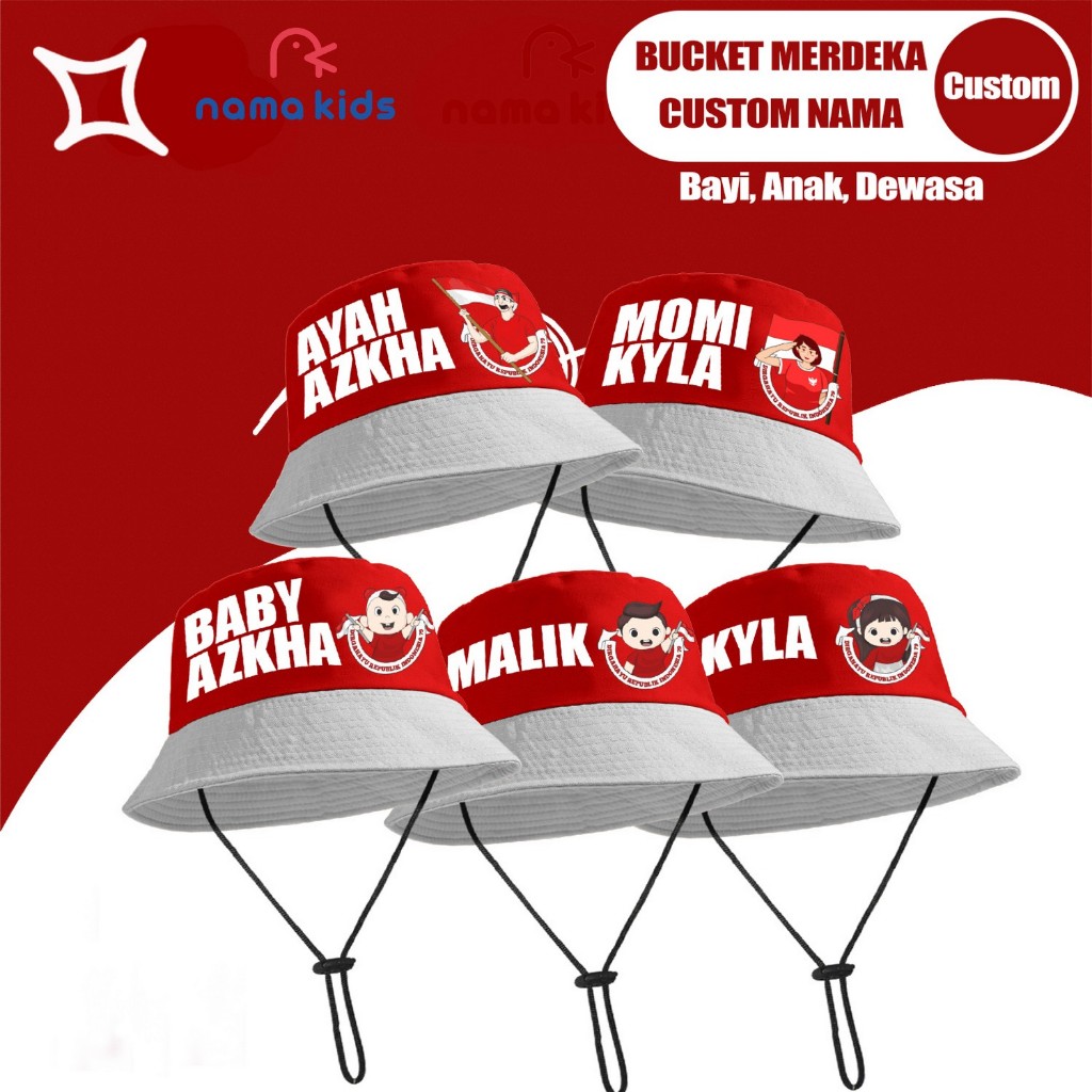 Bucket Sablon Kemerdekaan Costum Nama Anak Topi Bucket Kombinasi Merah Putih Topi Anak Dewasa Bayi Murah Topi Bucket
