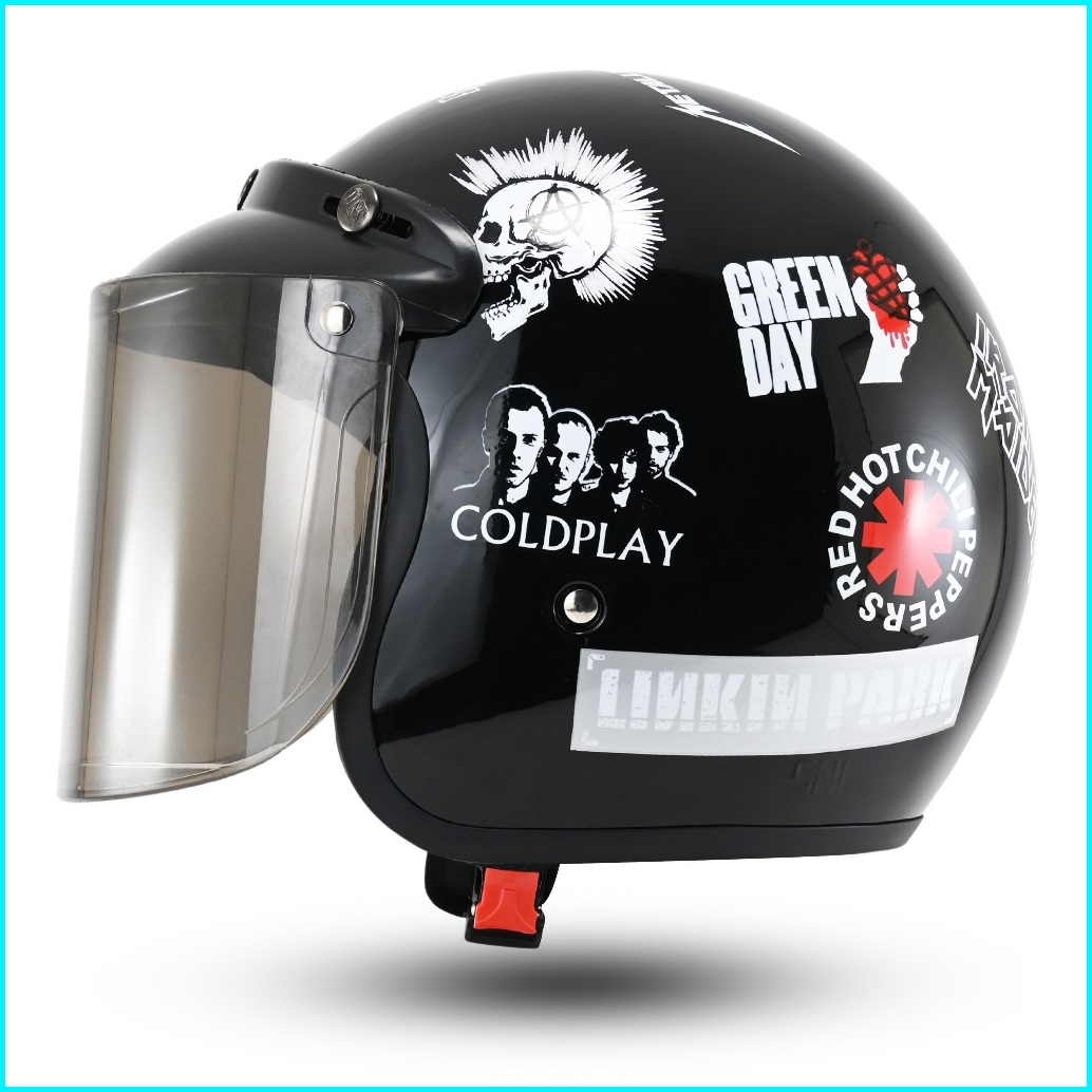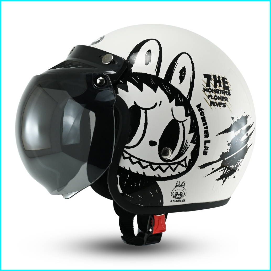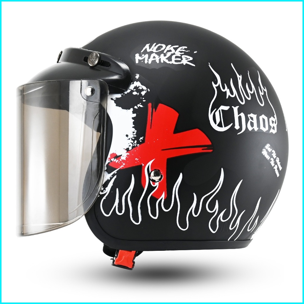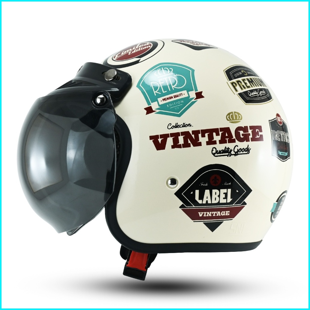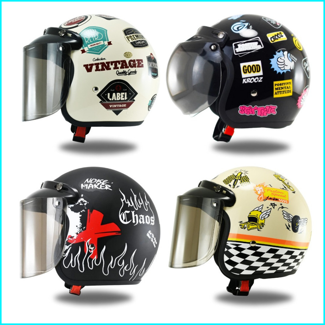 Helm Bogo Retro Motif One Piece Helem Pria Wanita Sni Helm Motor Kaca Datar