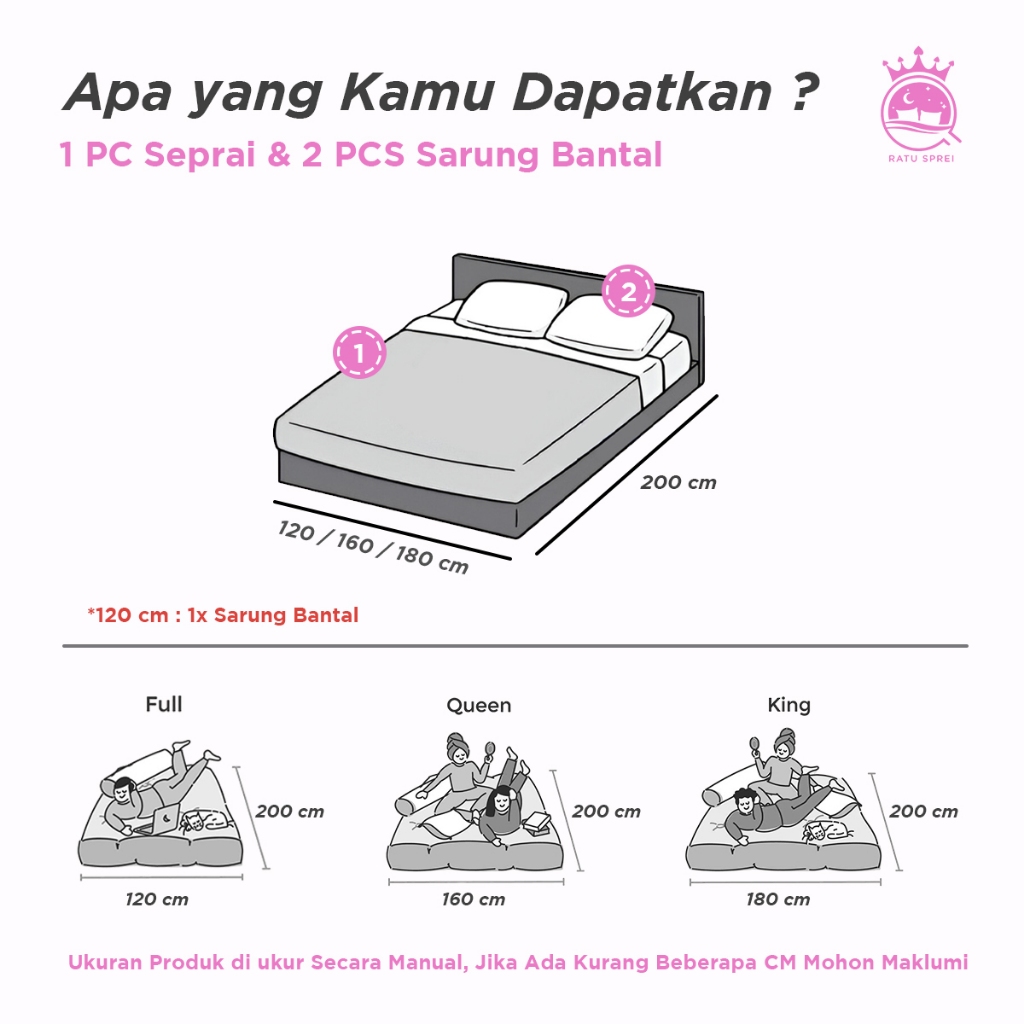 Sprei Set Sarung Bantal Guling Microtex 120 160 180 x 200 cm Set Seprei Sarguntal Estetik RATU SPREI