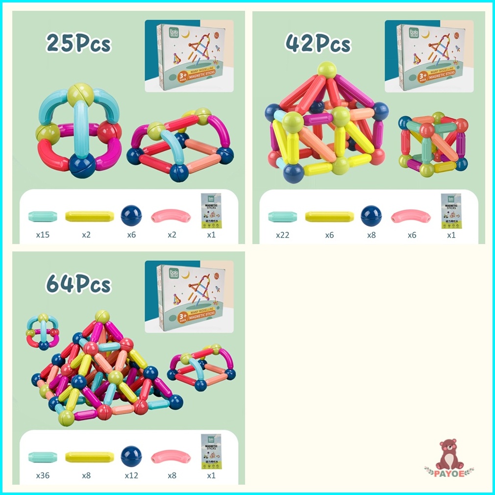Payoe Magnetic Stick Merakit Mainan Anak Magnetic Building Block 254264 Pcs