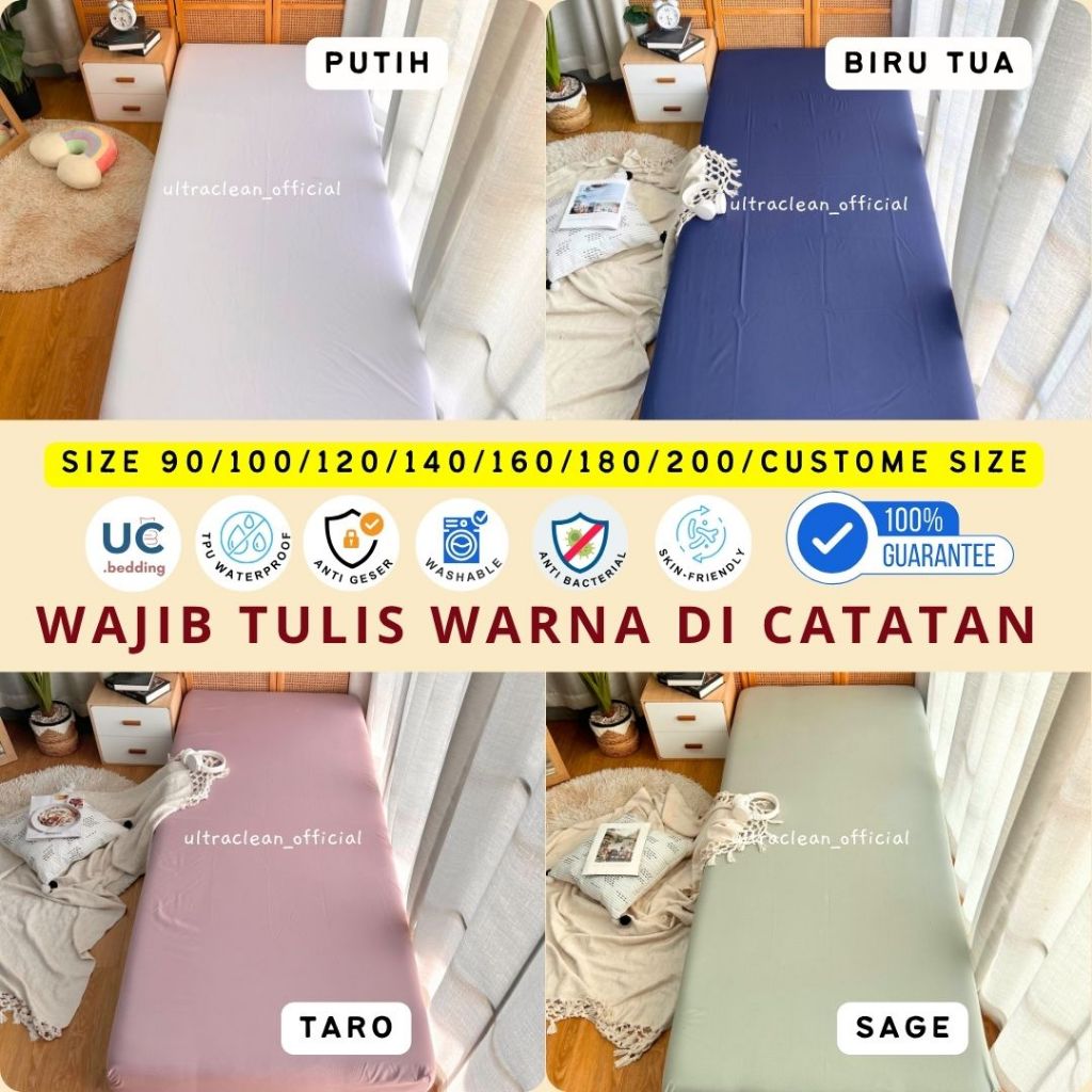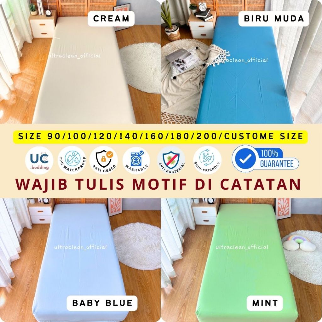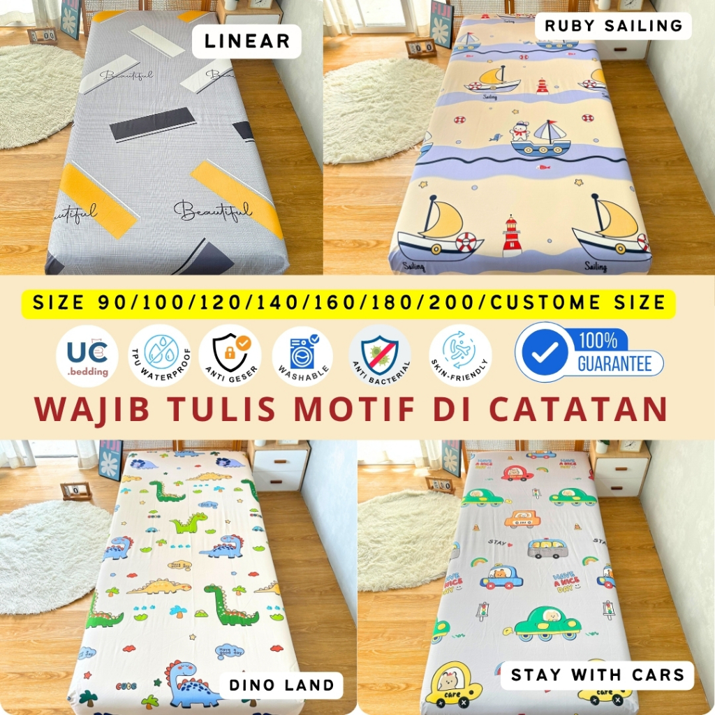 SPREI WATERPROOF ANTI GESER Anti Air Ompol Ukuran NO1 / NO2 / NO3 90 100 120 140 160 180 200